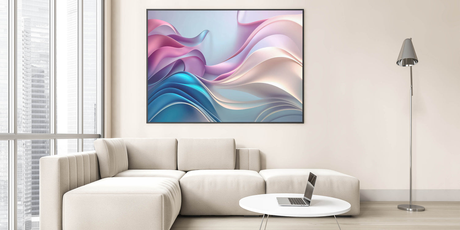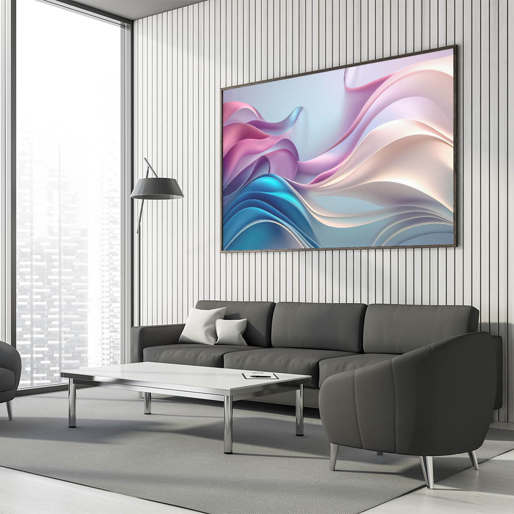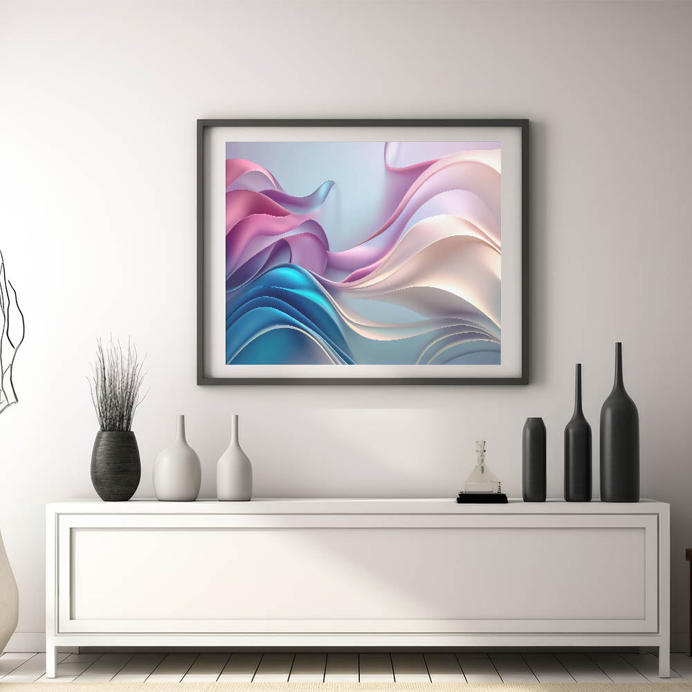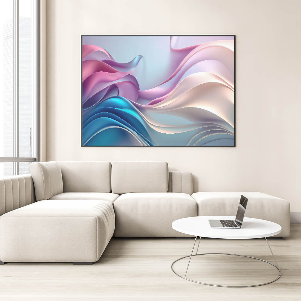 Immerse yourself in the beauty of this elegant abstract art design, a luxury abstract wall art collection piece featuring soft flowing waves in blue, lilac, pink, and ivory. The graceful movement and gentle color gradients create a premium abstract art piece, perfect for modern, stylish interiors. Designed to bring a sense of tranquility and sophistication, this high-end abstract canvas print enhances any contemporary space.