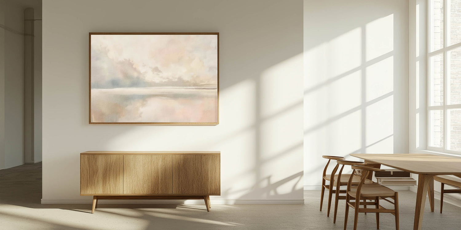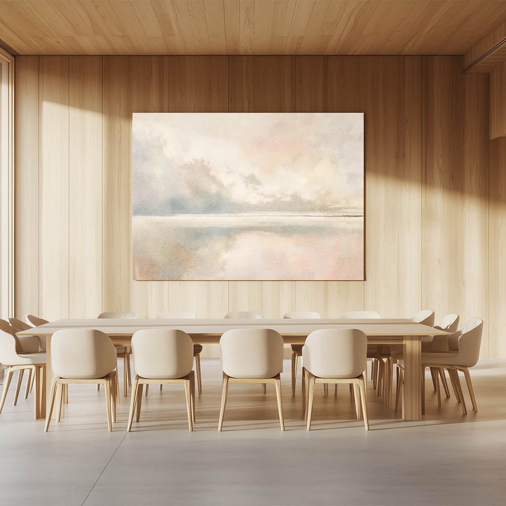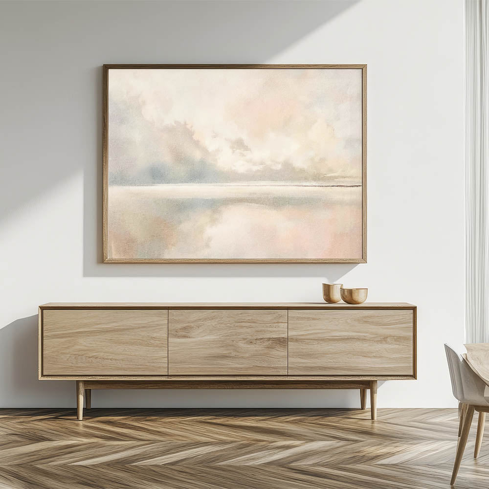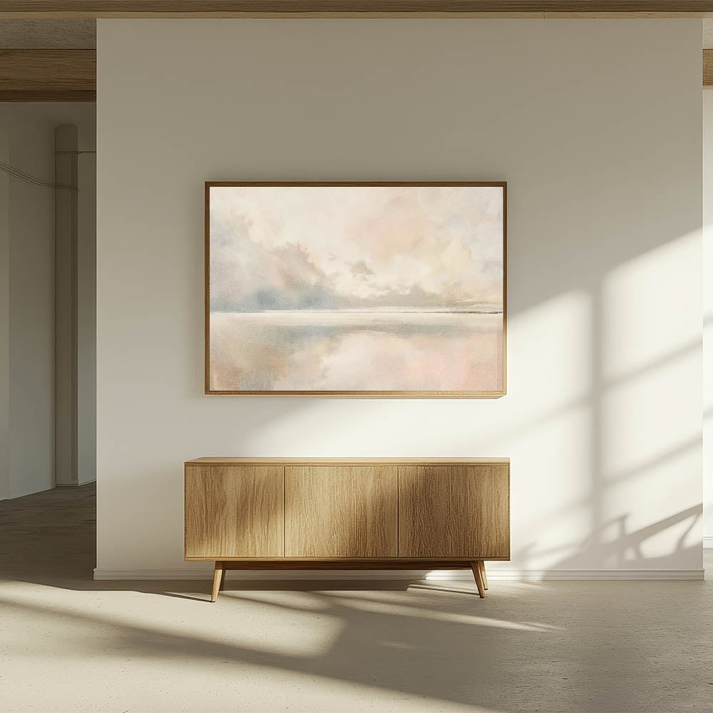 Bring a touch of elegance and tranquility to your space with this abstract landscape art. Featuring soft pastel shades of pink, beige, and subtle blue tones, this artwork exudes a calming, ethereal quality. Perfect for those who appreciate minimalist and contemporary decor, this piece invites a serene ambiance into any room.