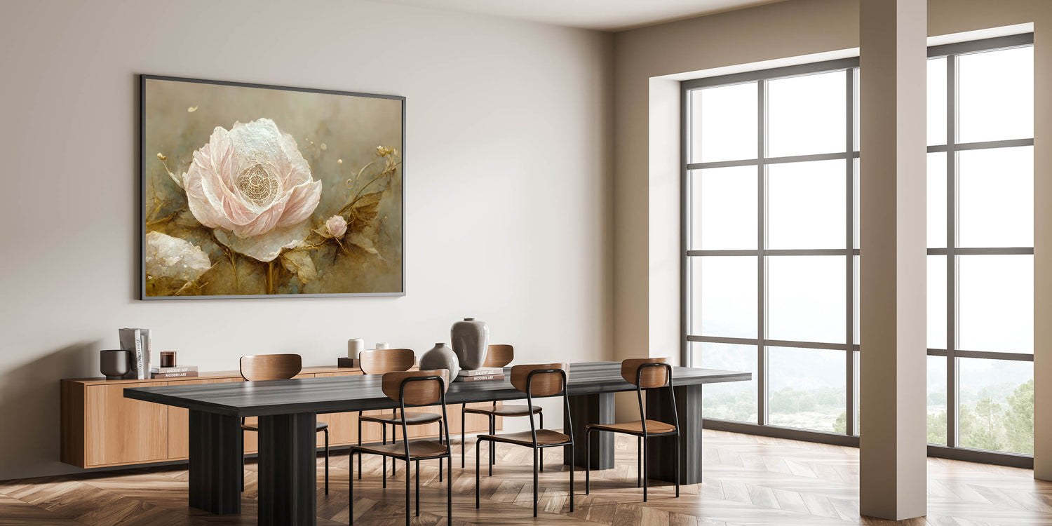 - Romantic Floral Design: A stunning contemporary art print perfect for a refined and inviting interior.