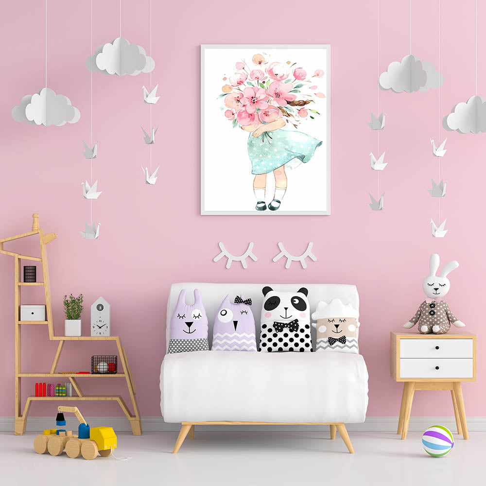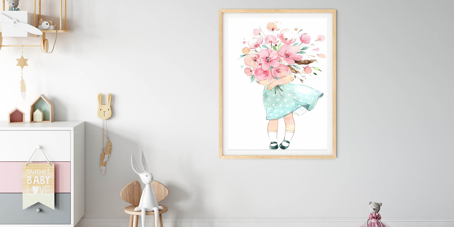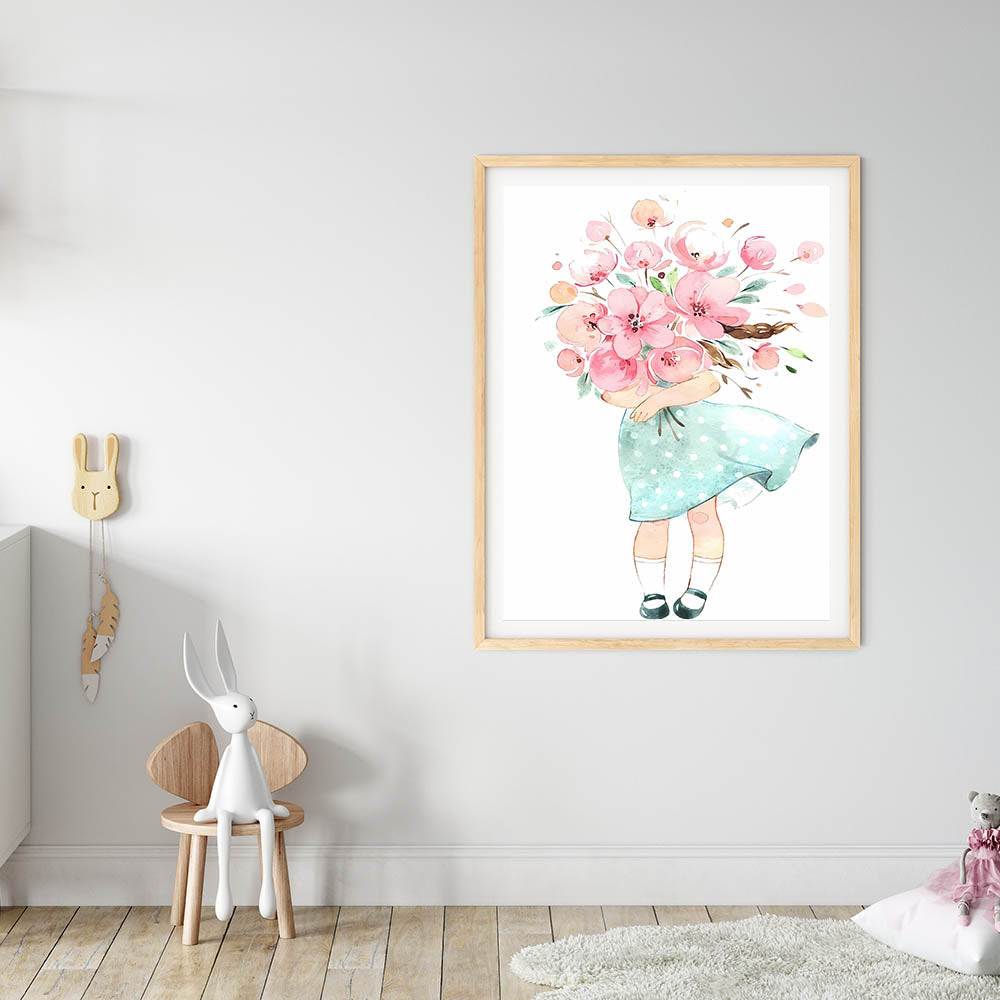Floral Bouquet Girl Girls Room Wall Art – Kids Room Art Print