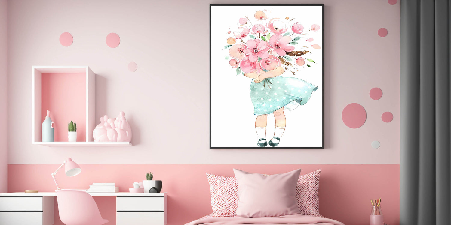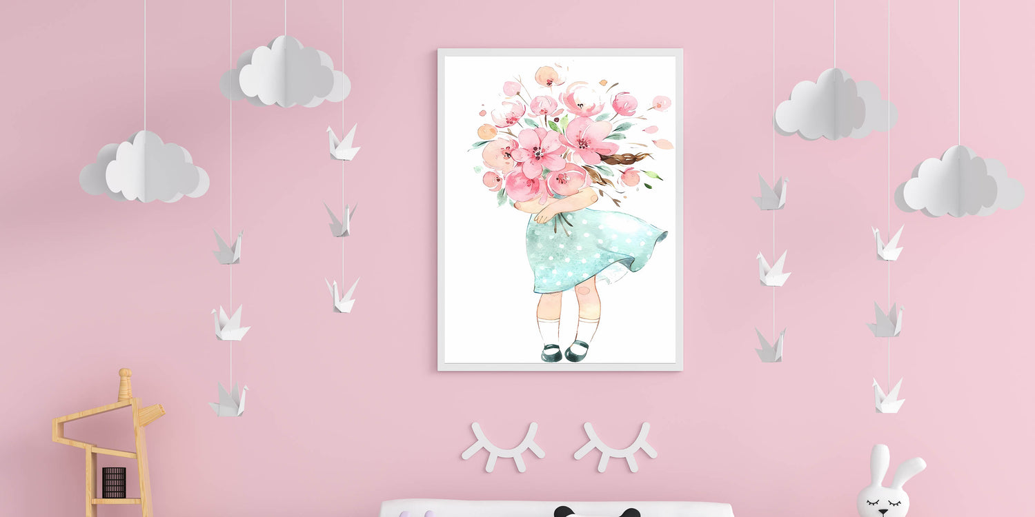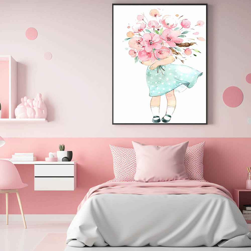 Floral Bouquet Girl Girls Room Wall Art – Kids Room Art Print