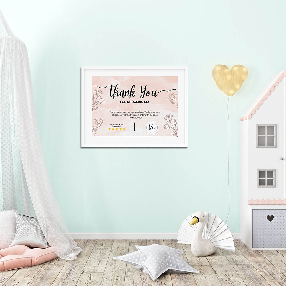Strengthen customer loyalty and enhance your brand with this beautifully designed thank you card, making every purchase feel special.