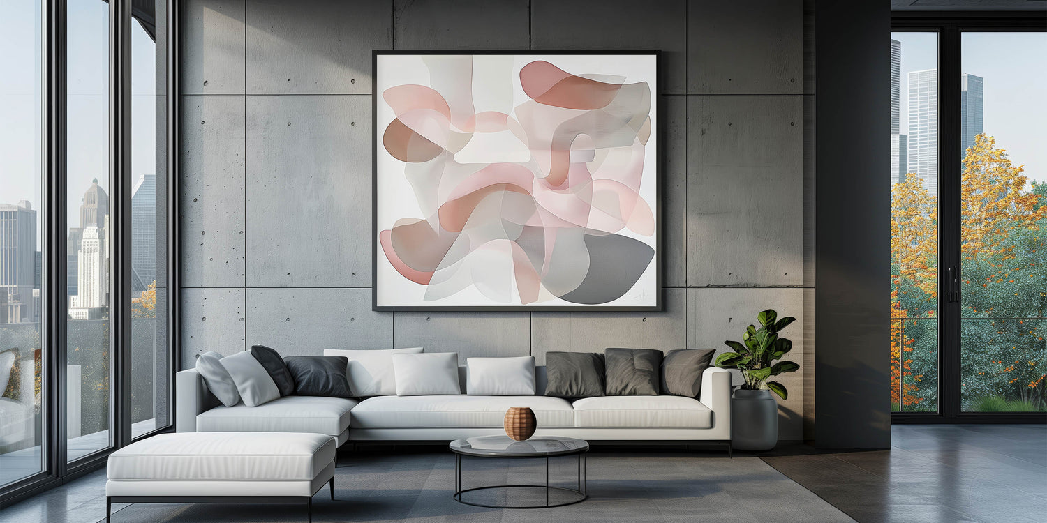 This contemporary art piece is perfect for creating a serene yet sophisticated atmosphere. Whether as a standalone piece or part of a gallery wall, its soft tones and geometric abstract designs are sure to captivate.