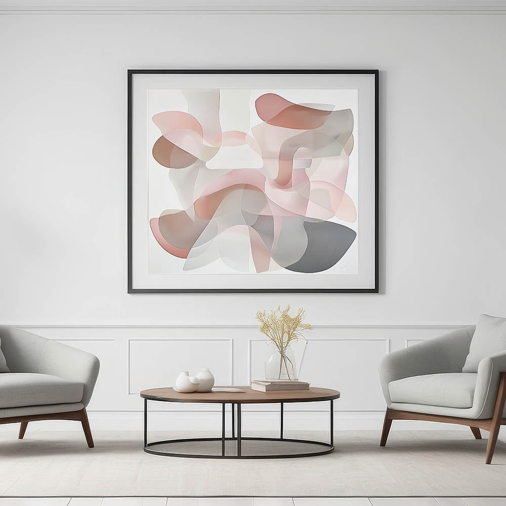 Introduce elegance to your home with this Geometric Abstract Wall Art, a soothing piece featuring soft curves and muted hues. Designed with a delicate palette of blush pink, beige, and light gray, this artwork brings a sense of calm and refinement to modern home decor. The flowing geometric patterns blend seamlessly into contemporary and minimalist spaces, making it a versatile addition to any room.