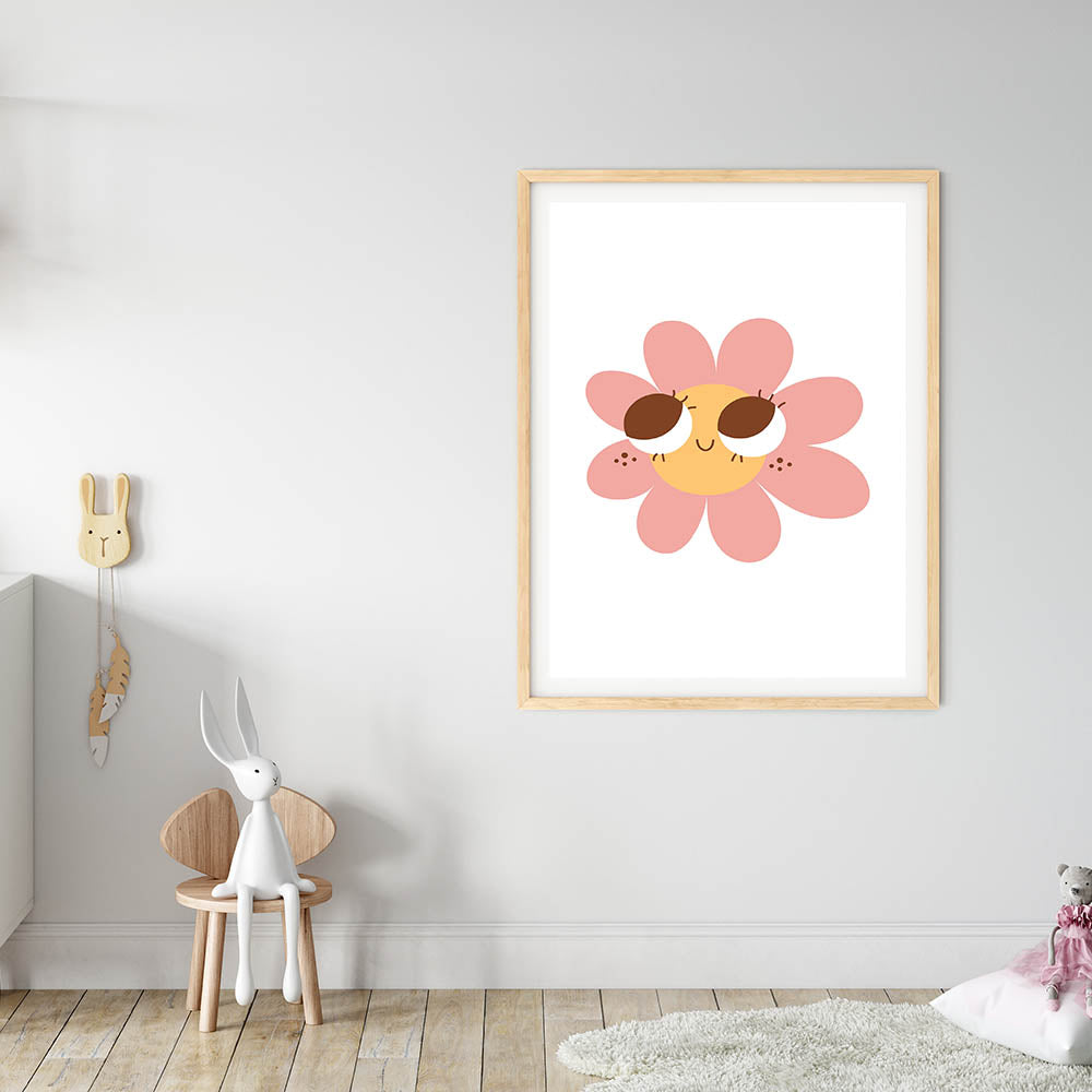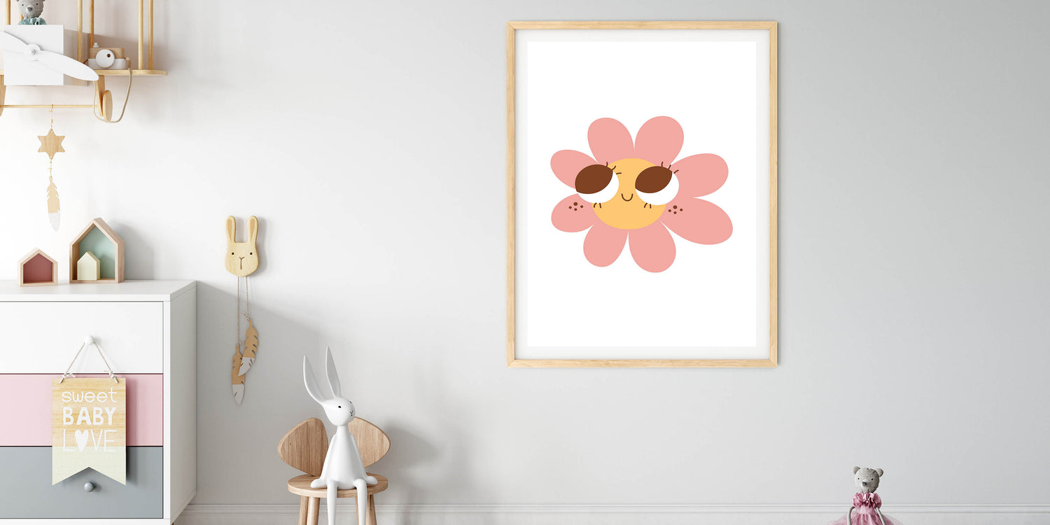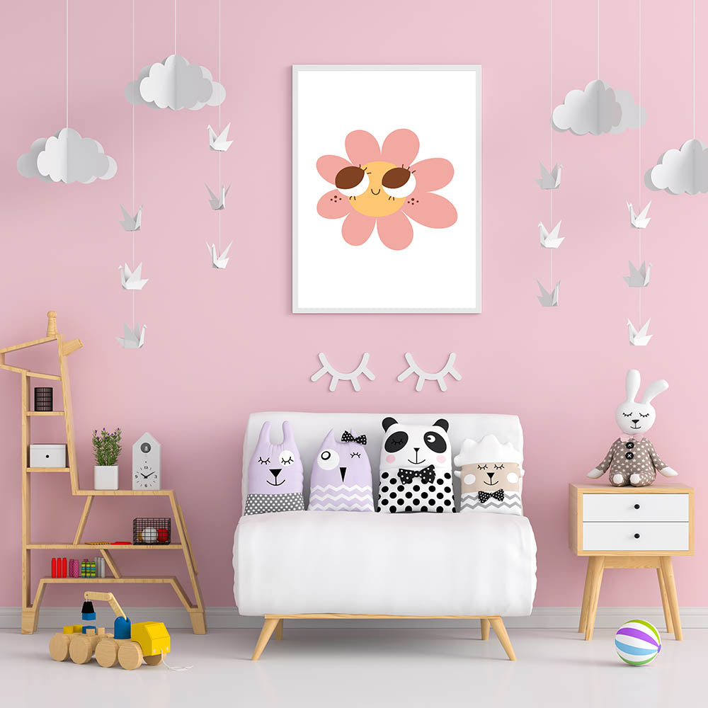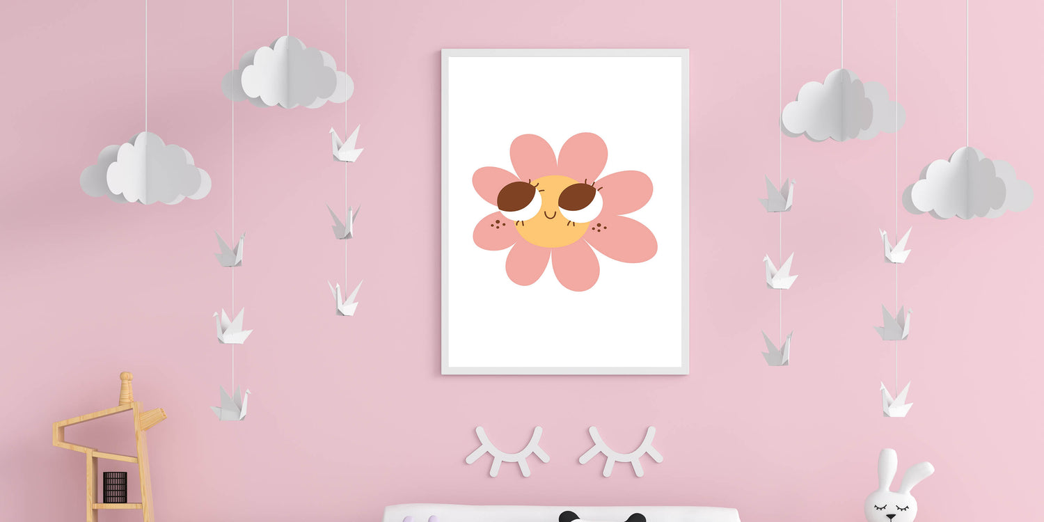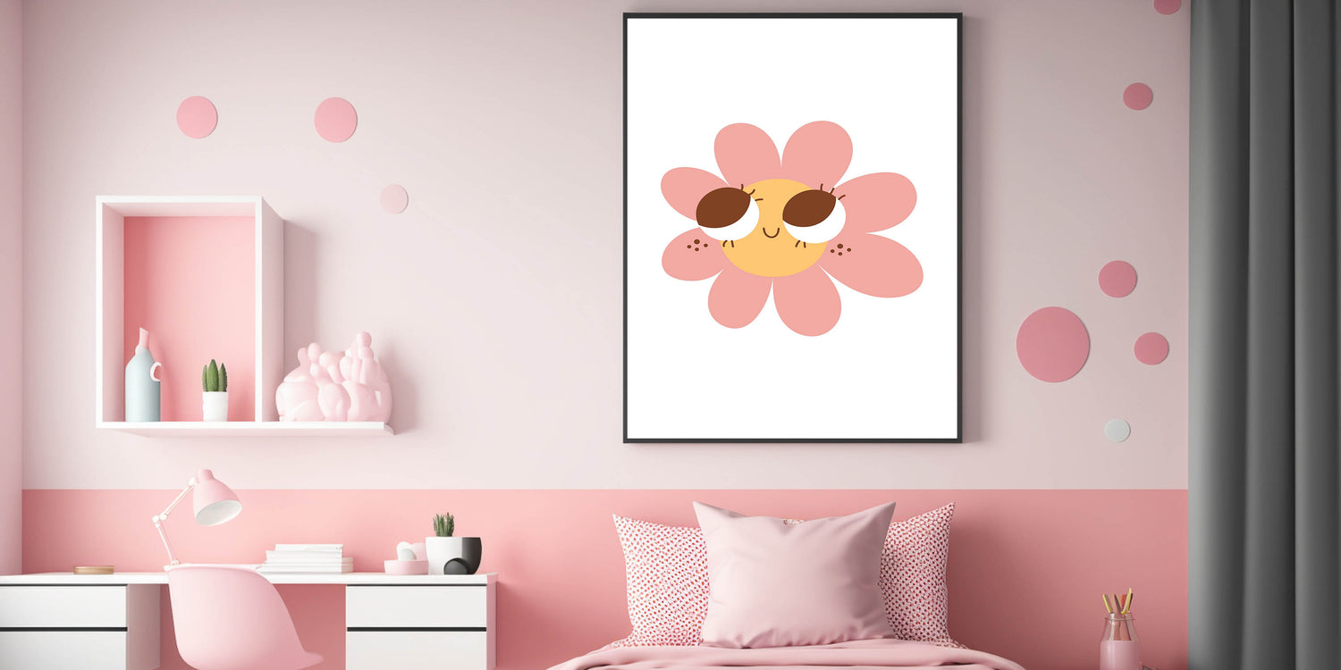 This customizable wall art for girls' bedrooms makes a wonderful gift for birthdays, baby showers, or floral-themed decor. The soft pink petals, warm yellow center, and charming expression make it perfect for modern, boho, or playful interiors.