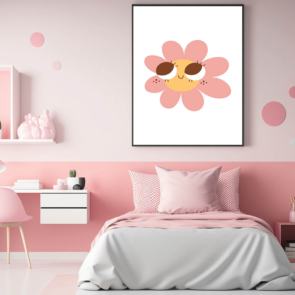 Add a cheerful touch to your child’s space with this adorable smiling pink daisy girls' bedroom art. Featuring a happy flower in soft pink and warm yellow tones, this whimsical print brings a fun and uplifting energy to any nursery, bedroom, or playroom.