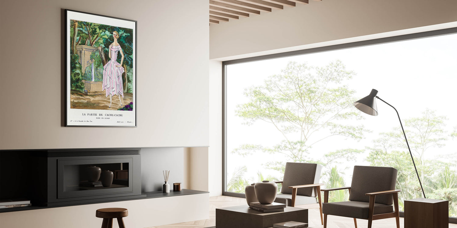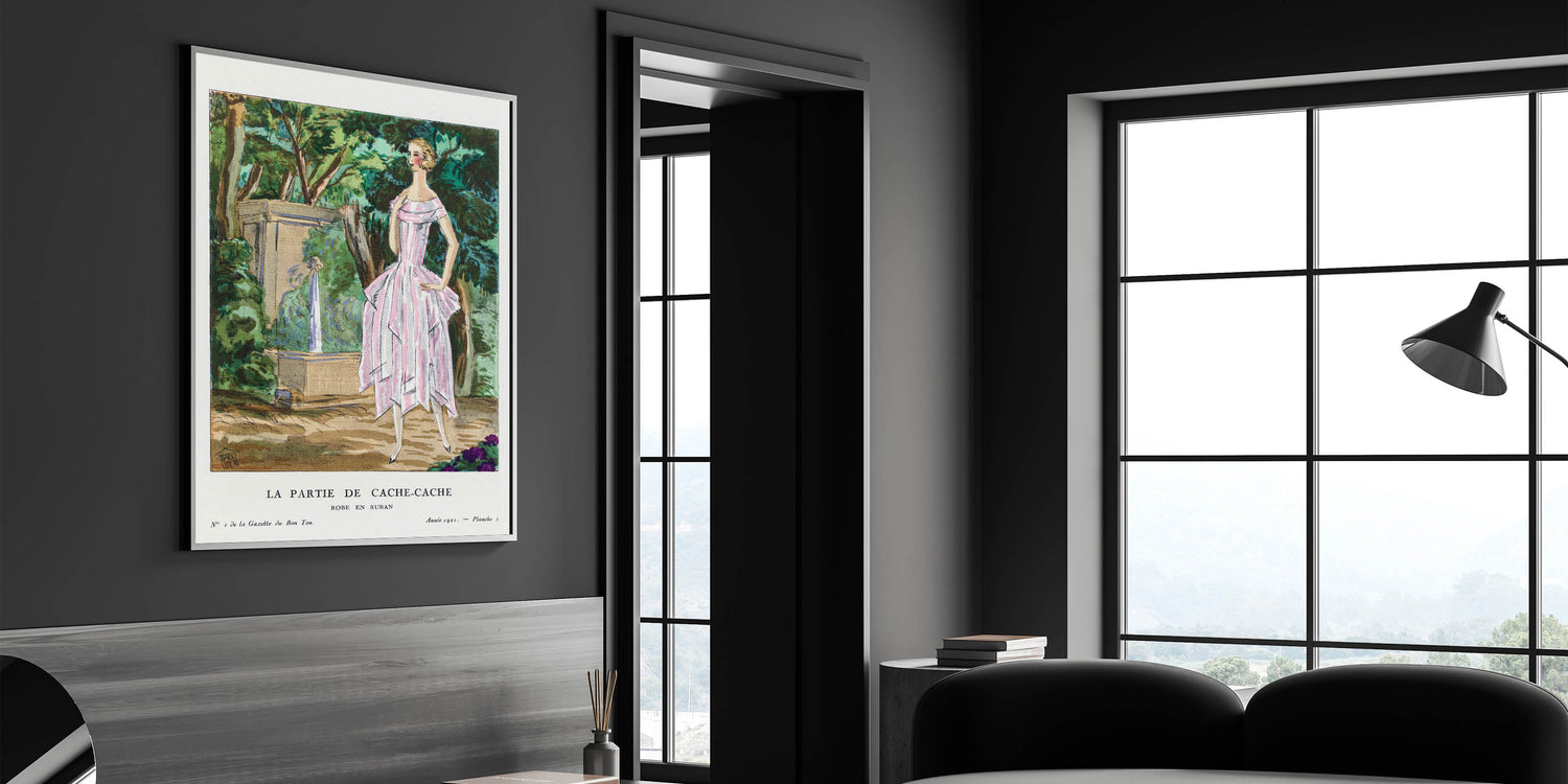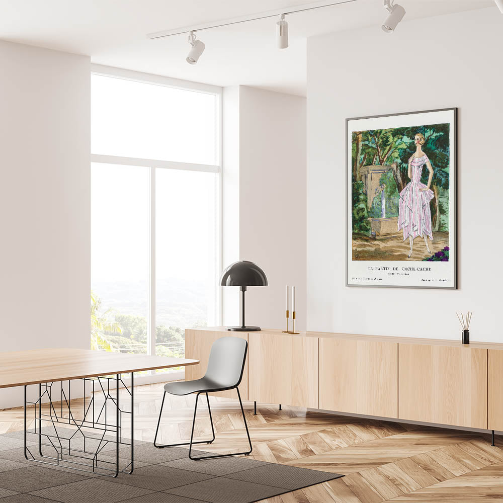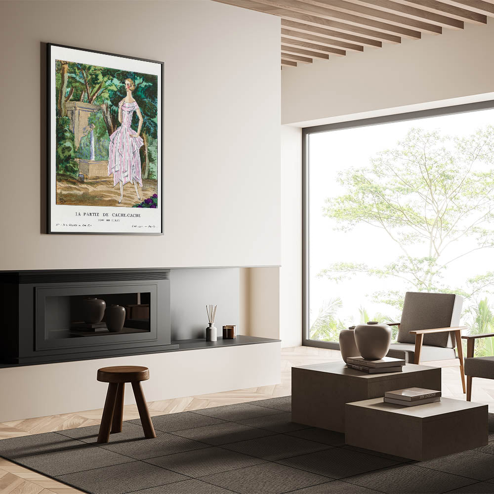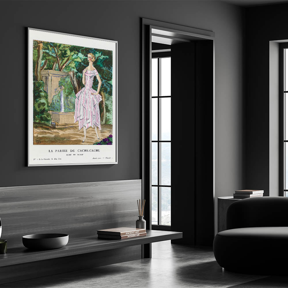 Step into a serene garden scene with this beautiful Art Deco wall art, capturing a stylish woman in a pink-striped dress amidst lush greenery. Titled "La Partie de Cache-Cache," this artwork blends elegance with a natural backdrop, highlighting the refined fashion and artistry of the 1920s. Perfect for lovers of vintage style and nature-inspired art, this piece brings a touch of grace and nostalgia to any room.