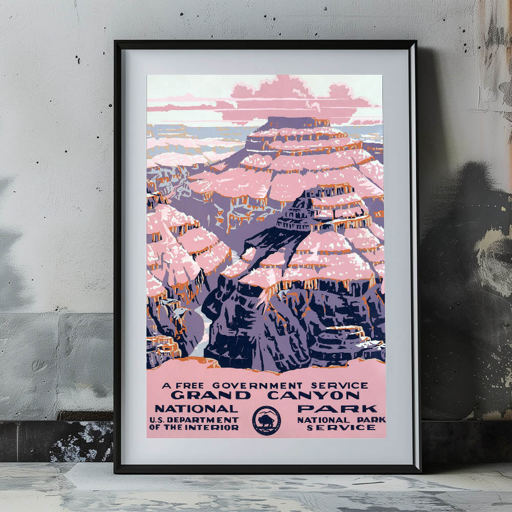 Capture the timeless beauty of the Grand Canyon with this vintage travel poster, featuring a classic retro design that evokes the golden age of tourism. This artwork is perfect for those who appreciate nostalgic travel prints and want to add a touch of historic charm to their decor.