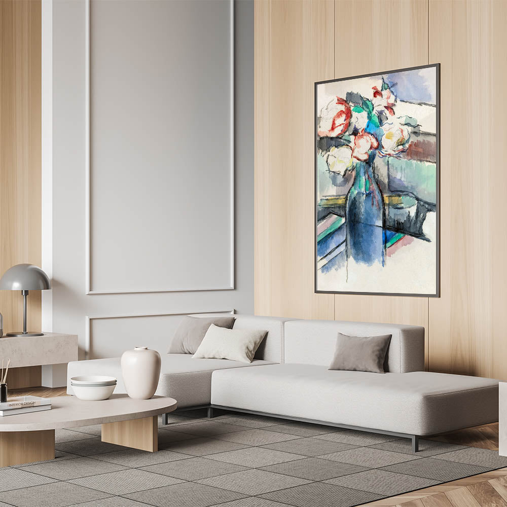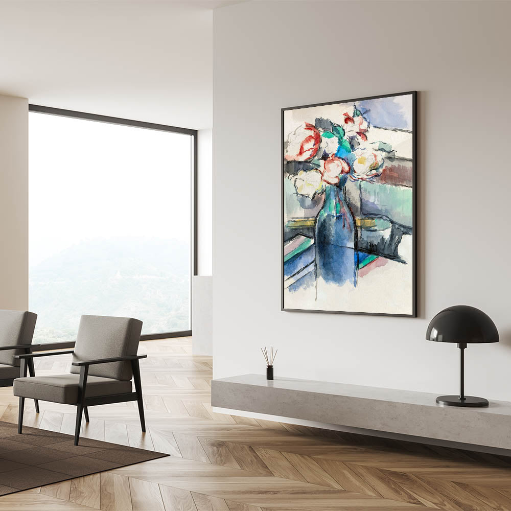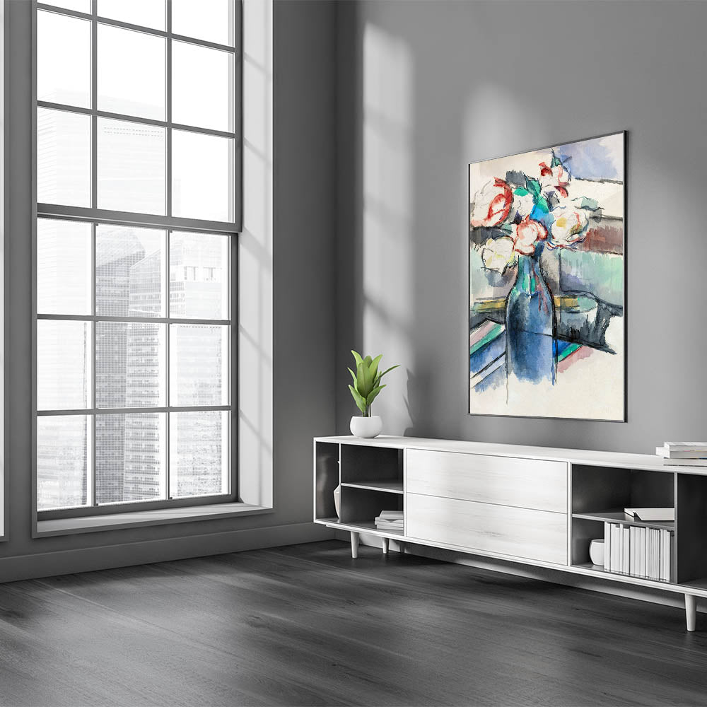 Infuse your space with elegance and simplicity through Impressionism wall art, "Roses in a Bottle" by Paul Cézanne. This delicate yet bold still life captures a bouquet of roses arranged in a glass bottle, showcasing Cézanne’s mastery of form and color. With soft hues, layered textures, and a modern approach to still life, this artwork embodies the essence of modern Impressionism art.