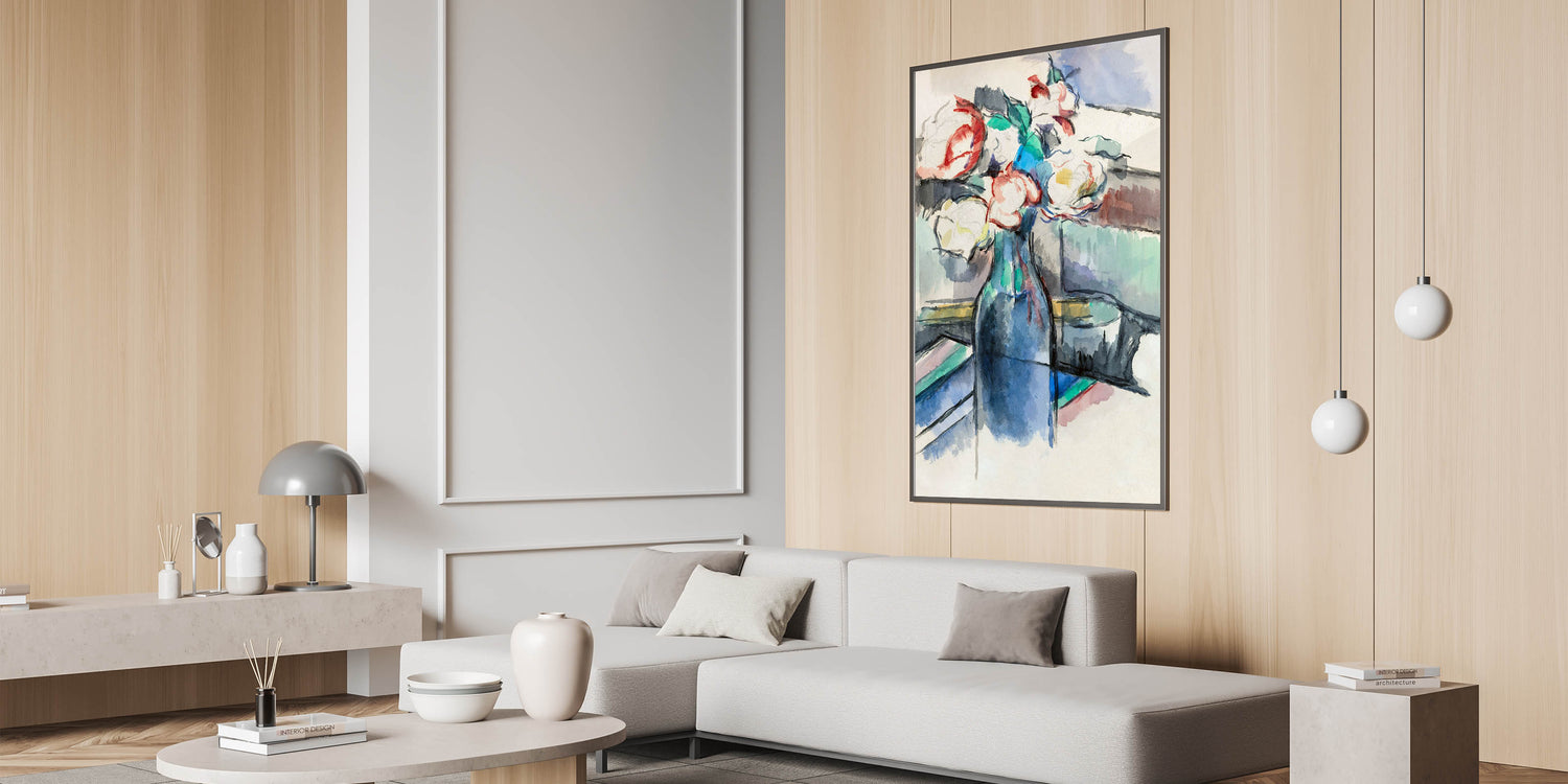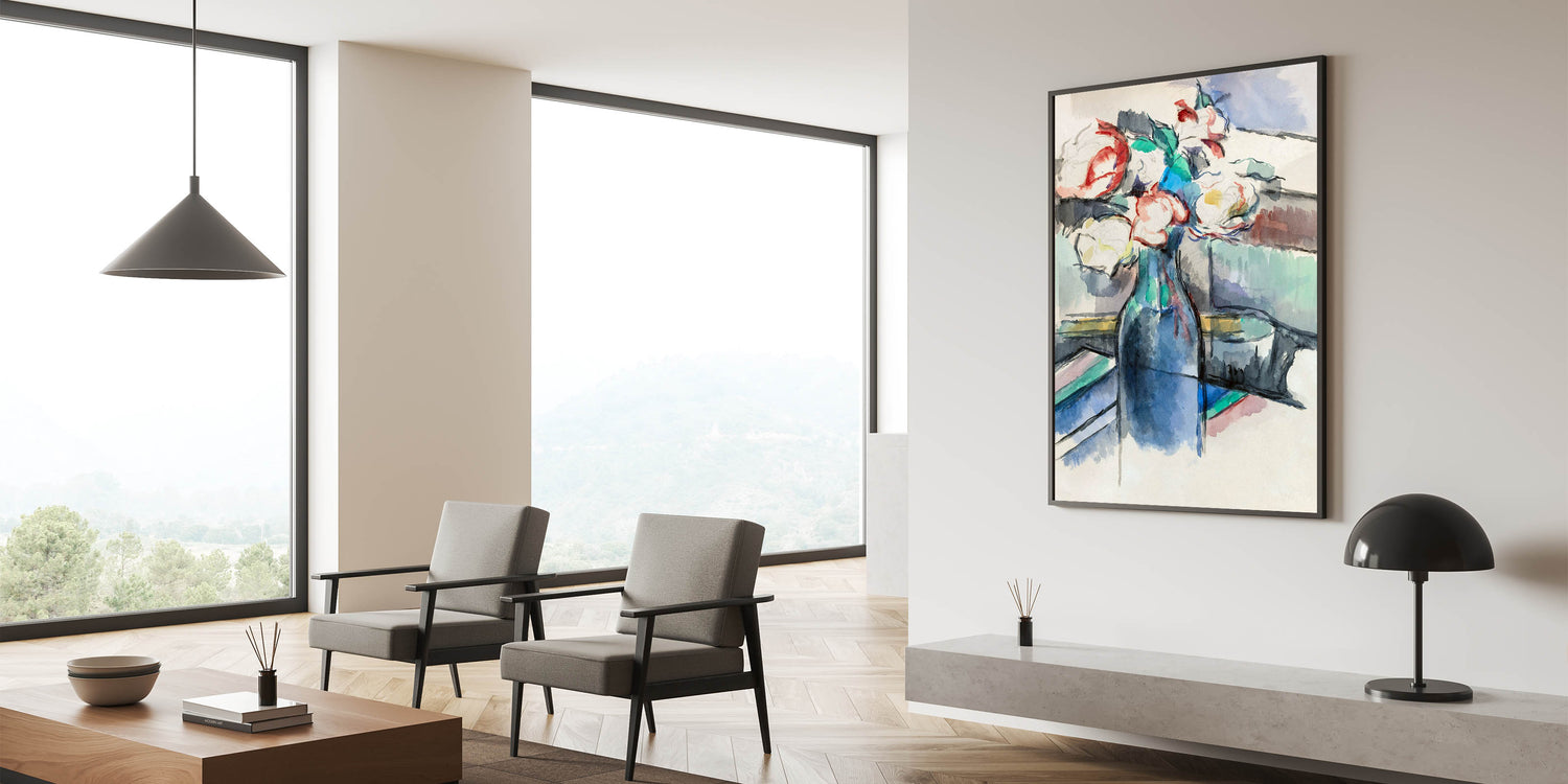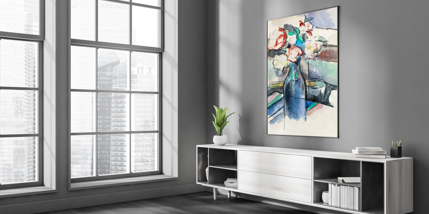 Infuse your space with elegance and simplicity through Impressionism wall art, "Roses in a Bottle" by Paul Cézanne. This delicate yet bold still life captures a bouquet of roses arranged in a glass bottle, showcasing Cézanne’s mastery of form and color. With soft hues, layered textures, and a modern approach to still life, this artwork embodies the essence of modern Impressionism art.