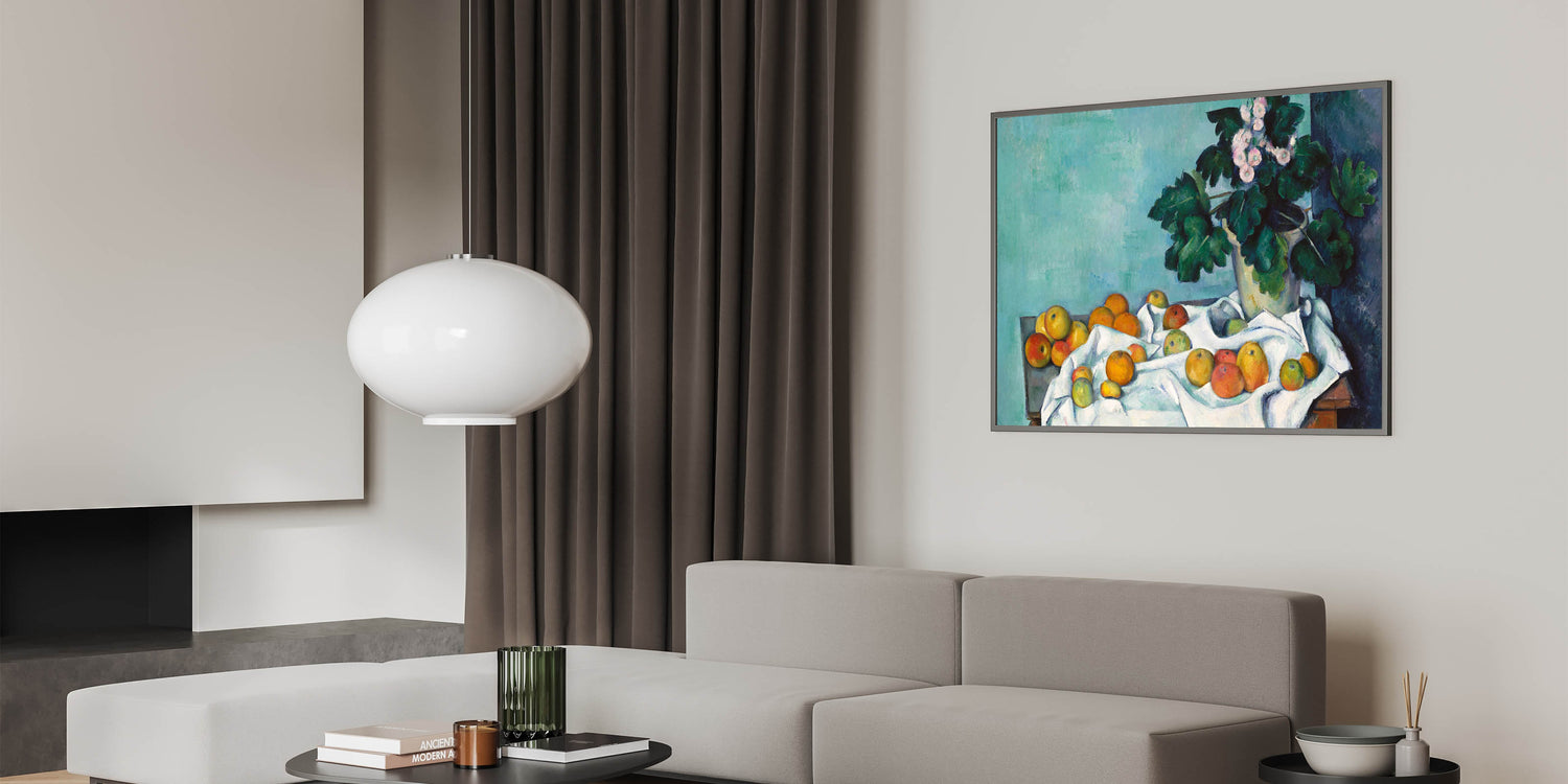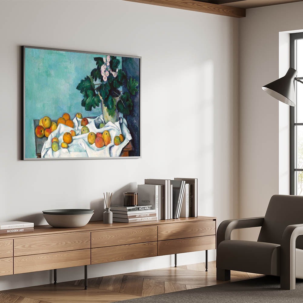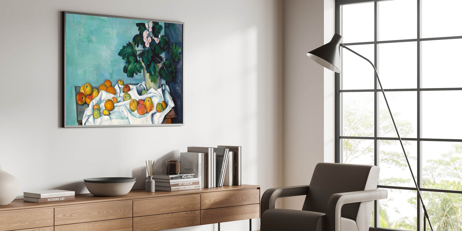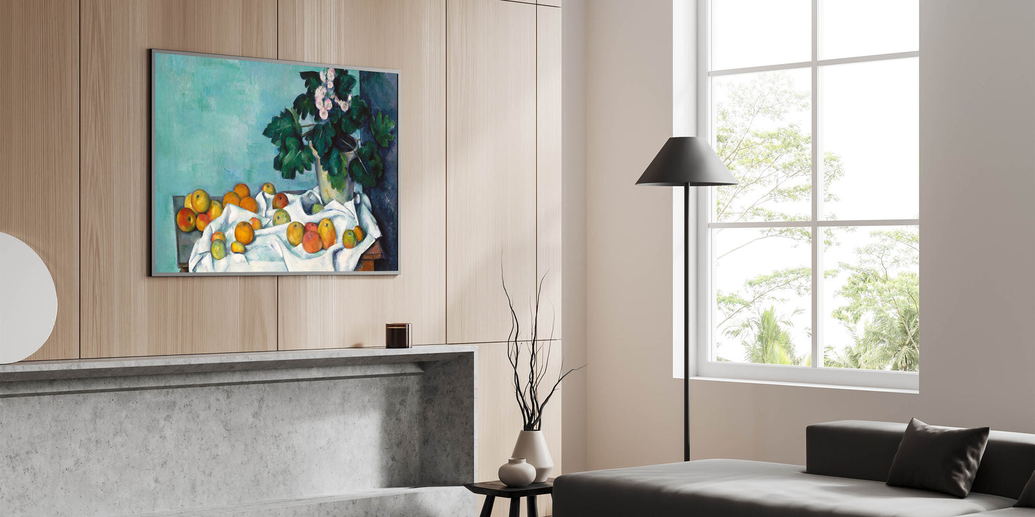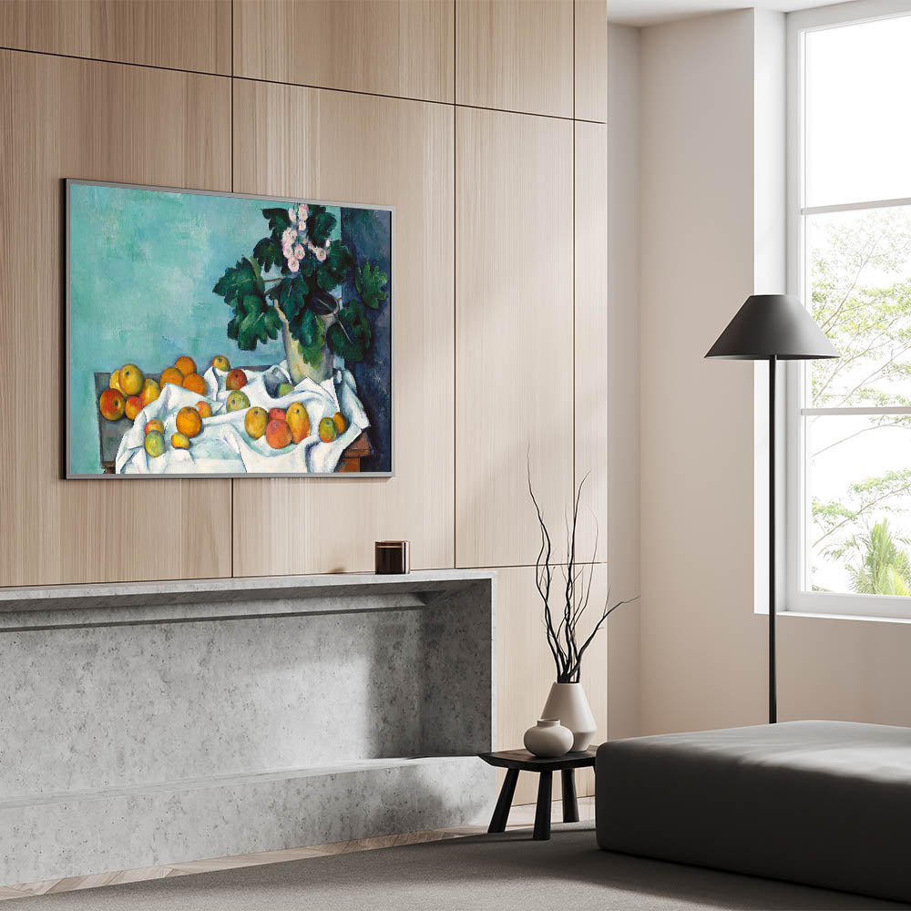 - Design: A beautiful still life blending vivid florals with ripe fruits, showcasing the charm of Impressionism.