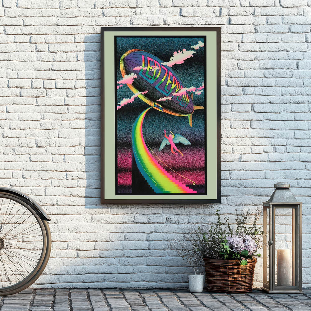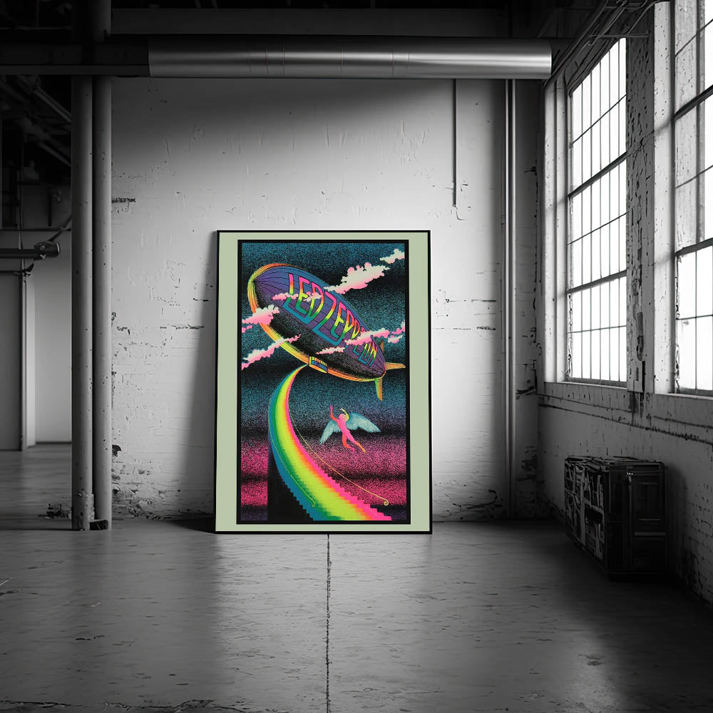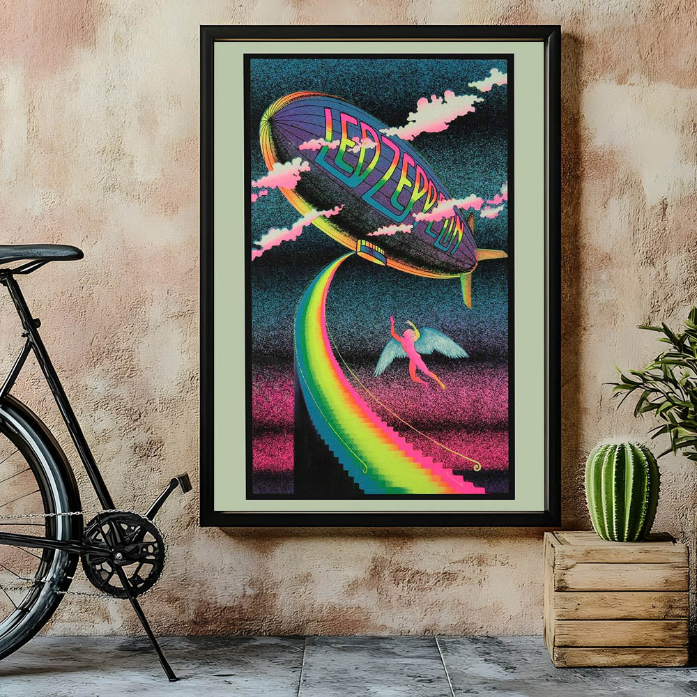 Bring the magic of Led Zeppelin’s iconic imagery into your home with this Rainbow Zeppelin poster. Featuring a surreal, psychedelic design with vibrant neon colors and a mystical figure, this vintage print captures the free-spirited energy of the '70s rock scene. Perfect for fans of classic rock and vintage concert posters, this design brings a bold, retro vibe to any space.