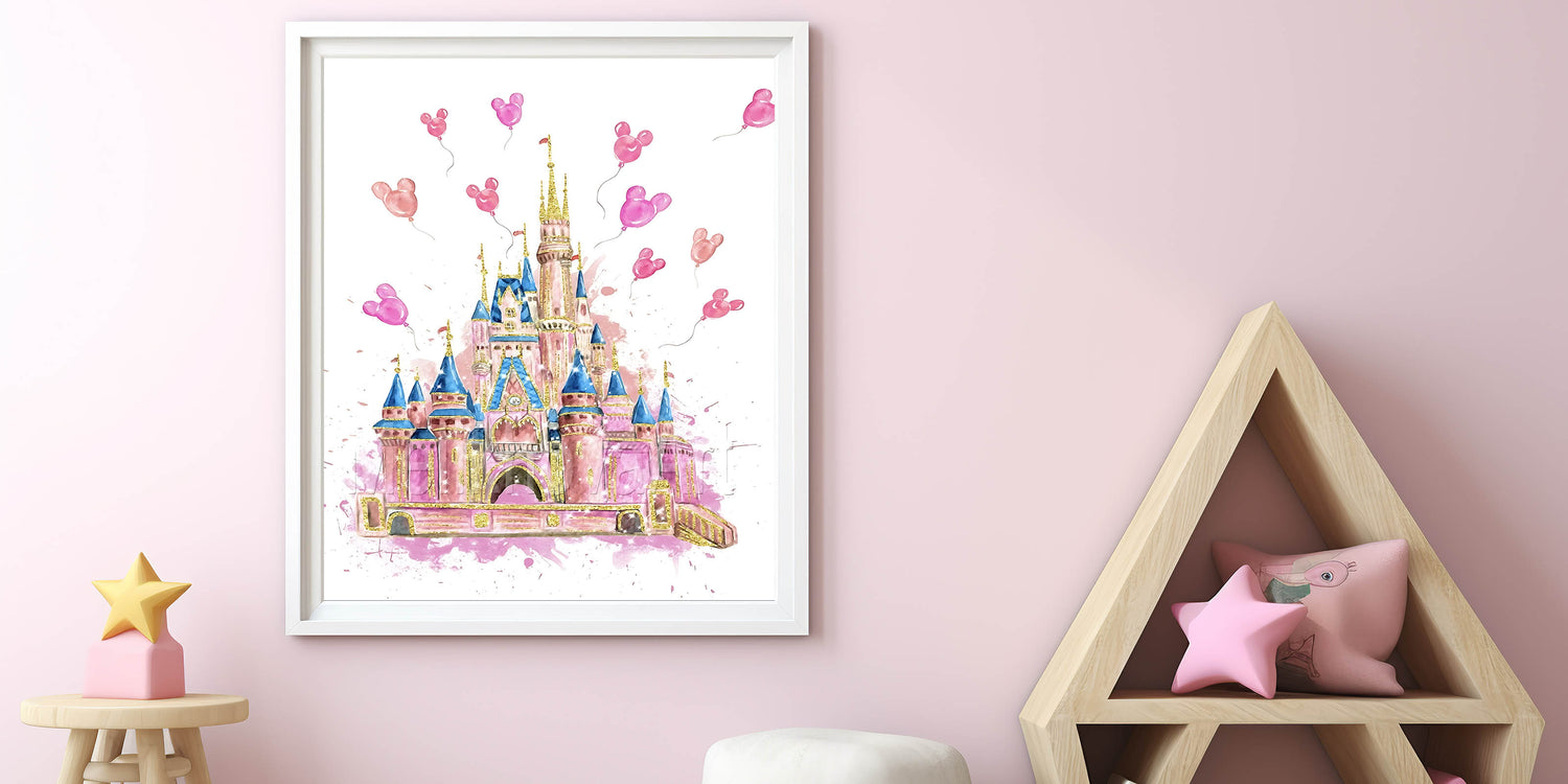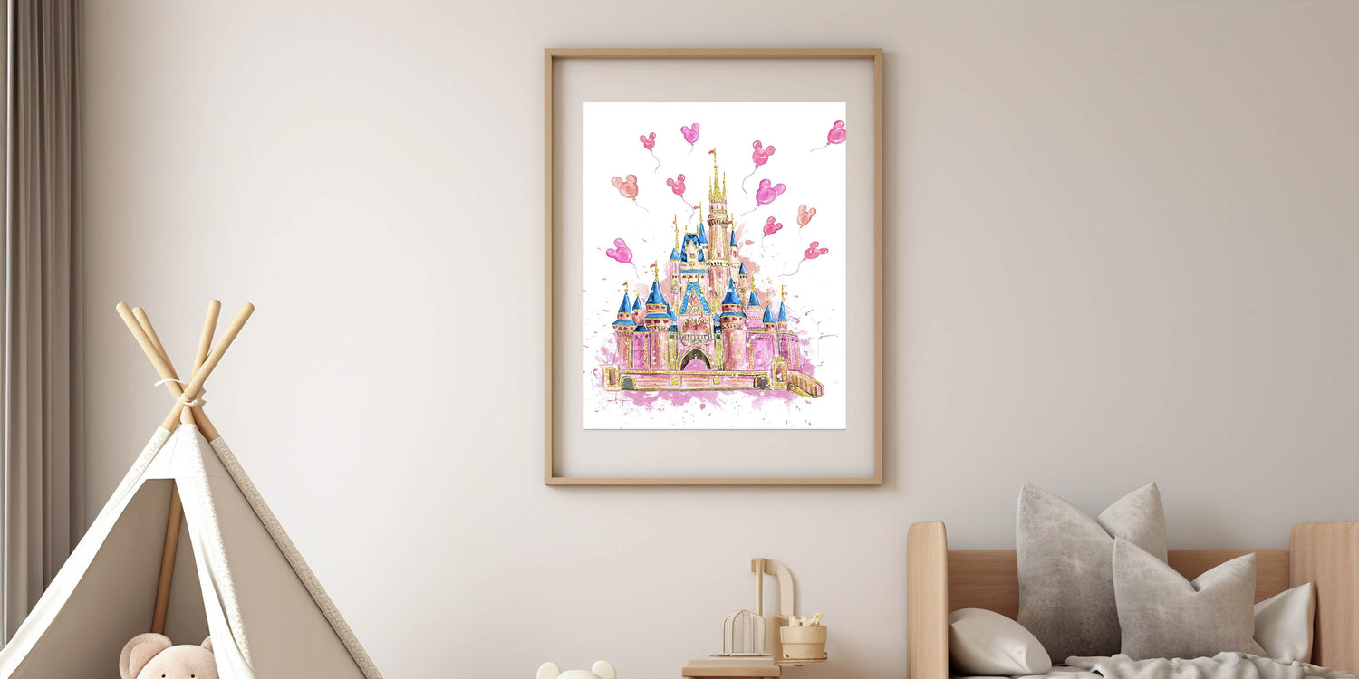 Let your little one dream big with this charming, magical artwork—a must-have for any princess-themed room.