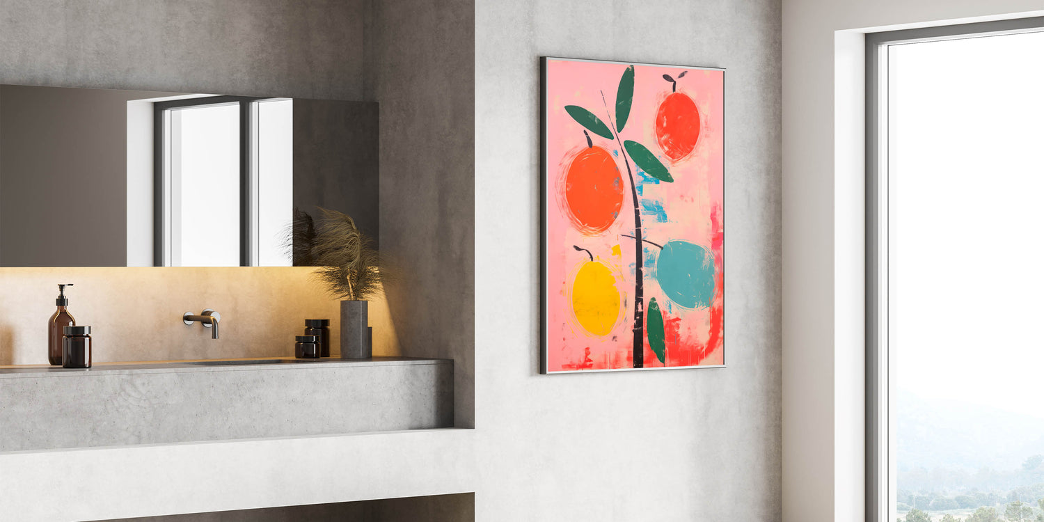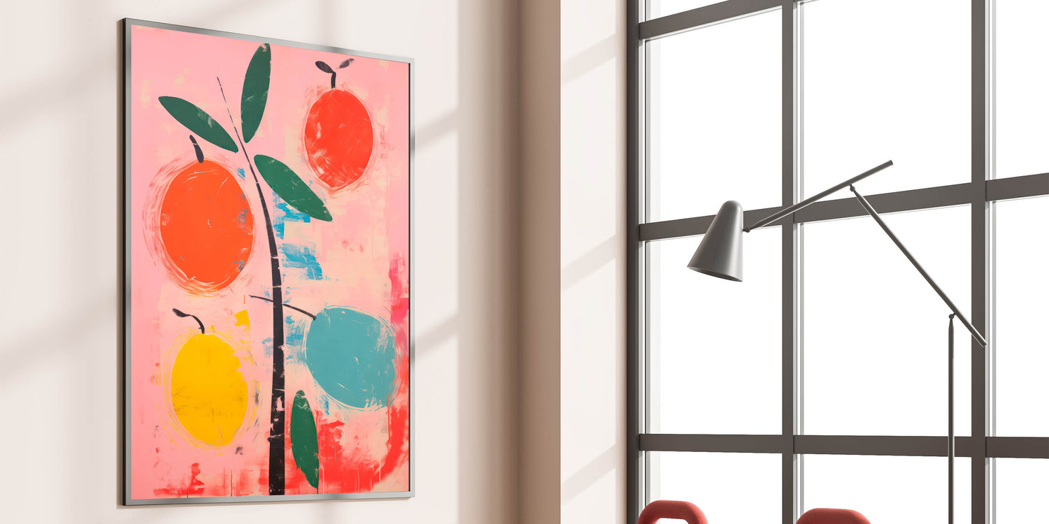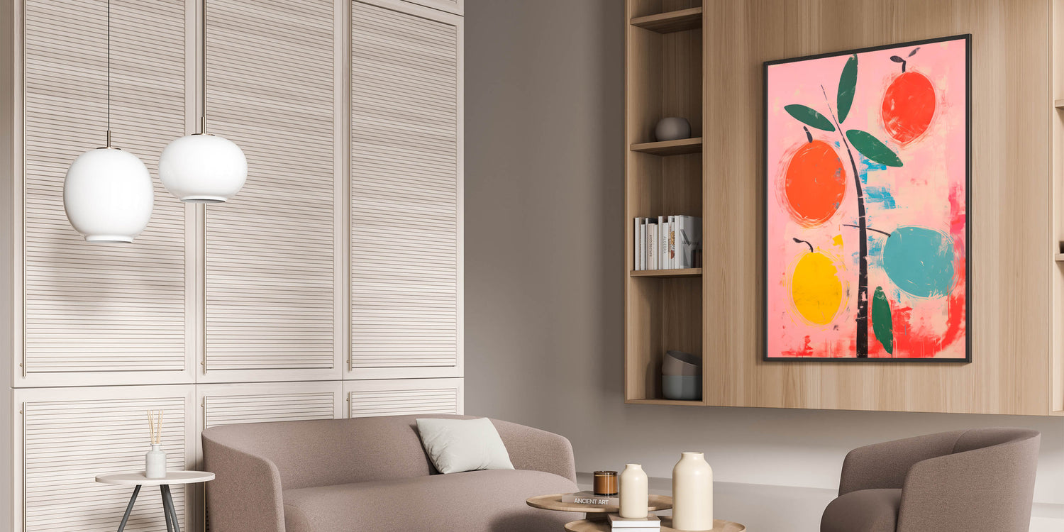 Maximalist Wall Art: Bold Abstract Fruit with Pink Background – Eclectic Decor