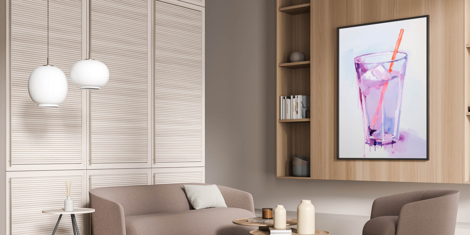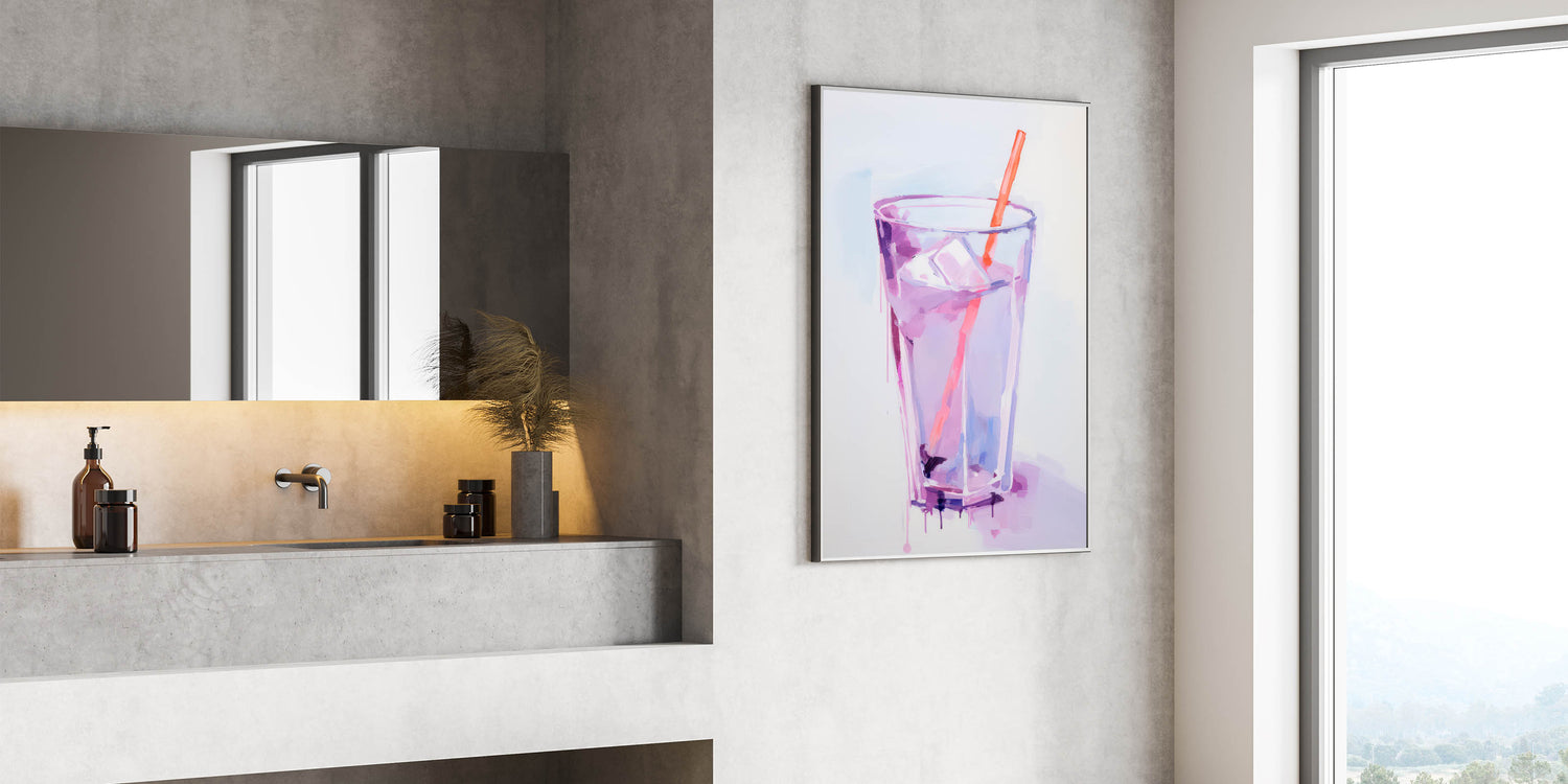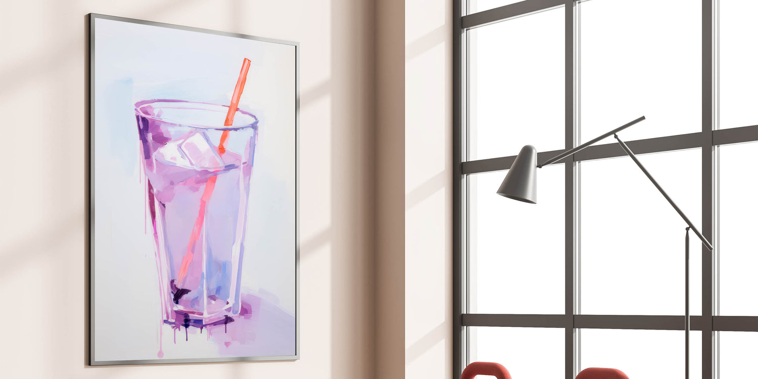 Add a refreshing touch to your space with this Maximalist Wall Art, featuring a bold depiction of a glass with a colorful straw in vibrant shades of pink, purple, and coral. The expressive artwork combines abstract elements with playful colors, creating a captivating composition that draws the eye. Ideal for those who appreciate unique and eclectic decor, this piece brings a sense of modern artistry to living rooms, kitchens, or creative spaces.