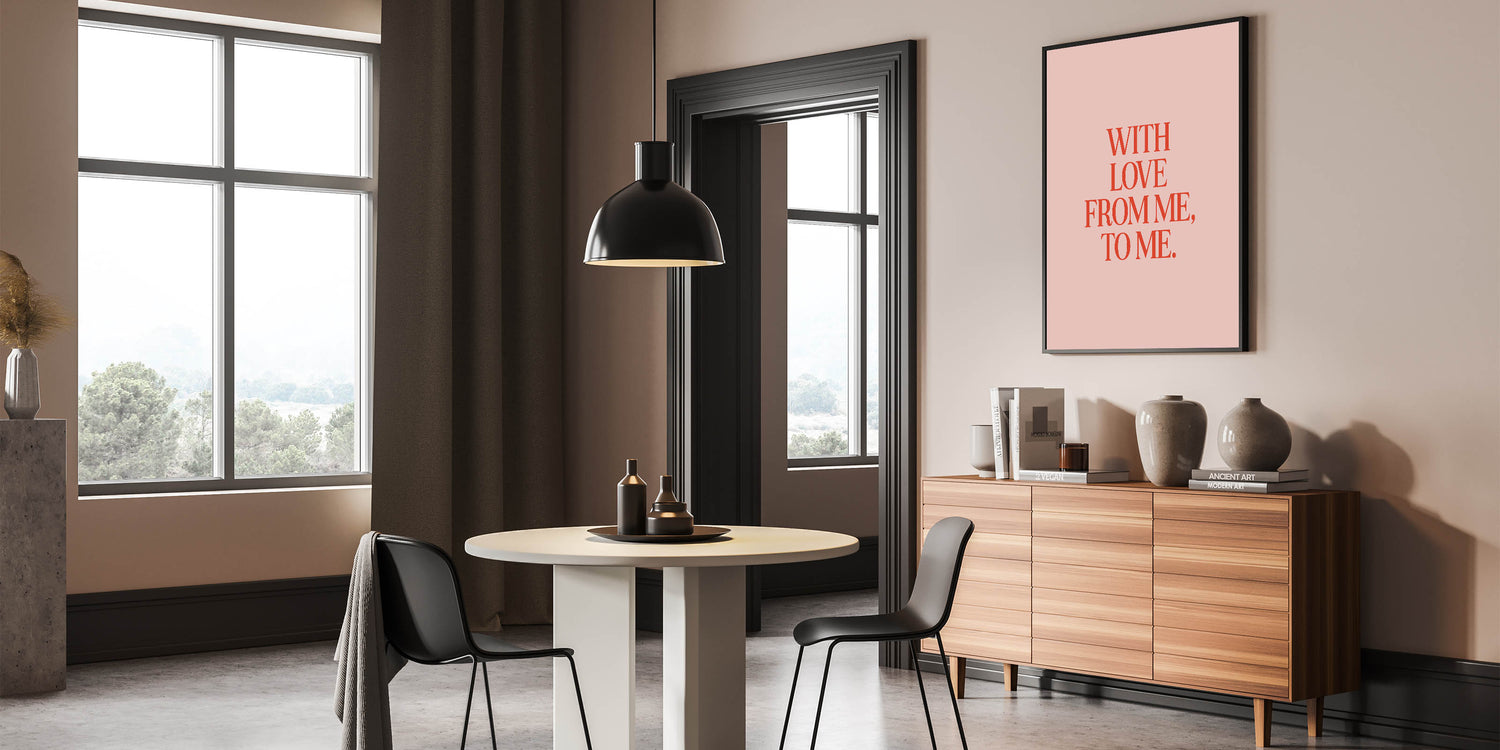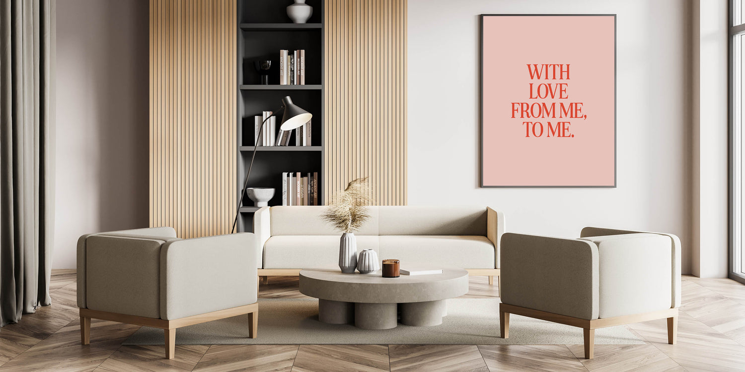 Add a touch of loving energy to your decor with this bold self-love quote that combines the power of maximalism with a message of affirmation, creating a comforting atmosphere in any room.
