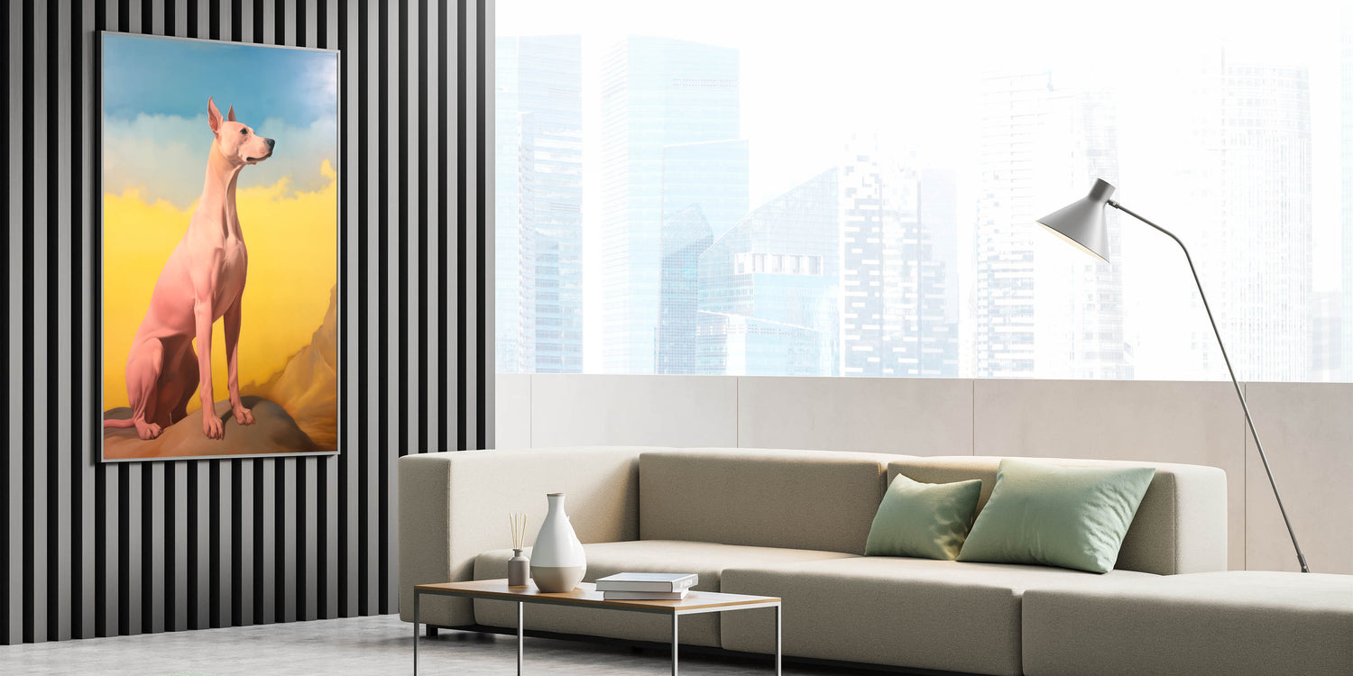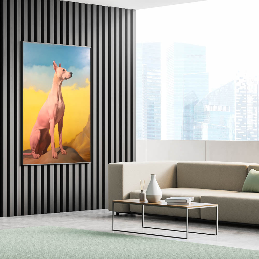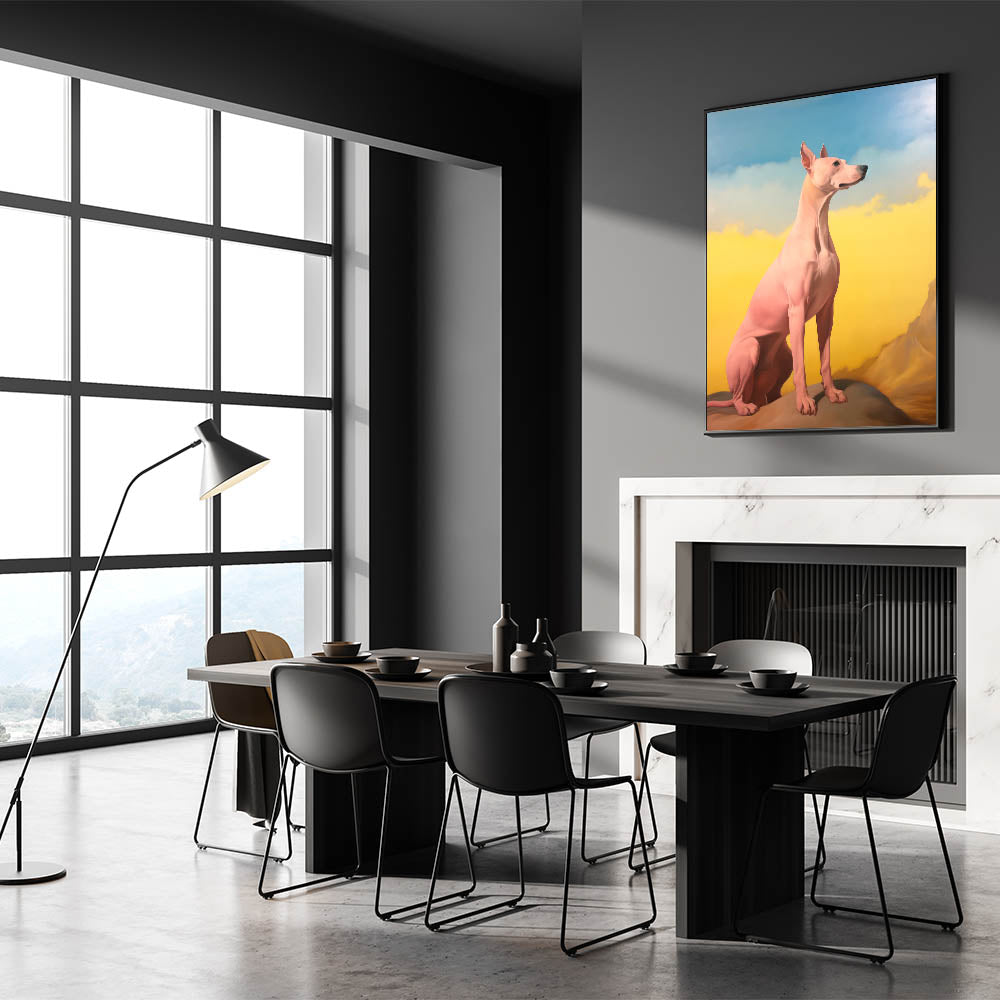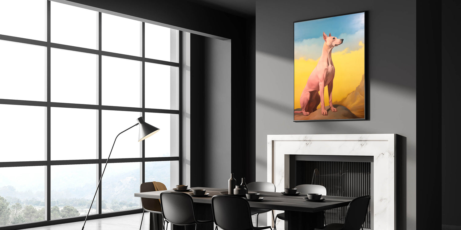 - Statement Wall Art: The regal dog portrait serves as a captivating focal point, perfect for modern interiors.