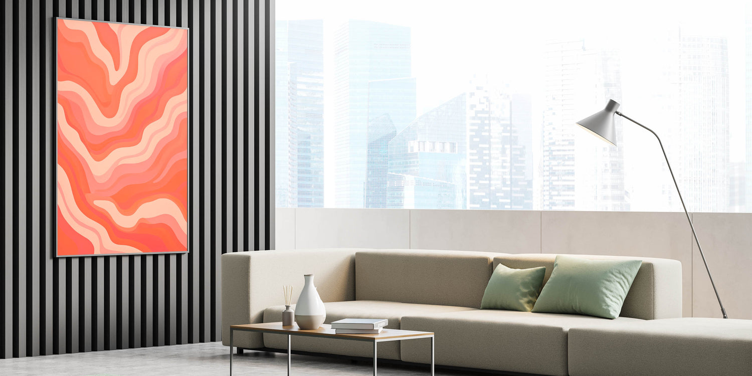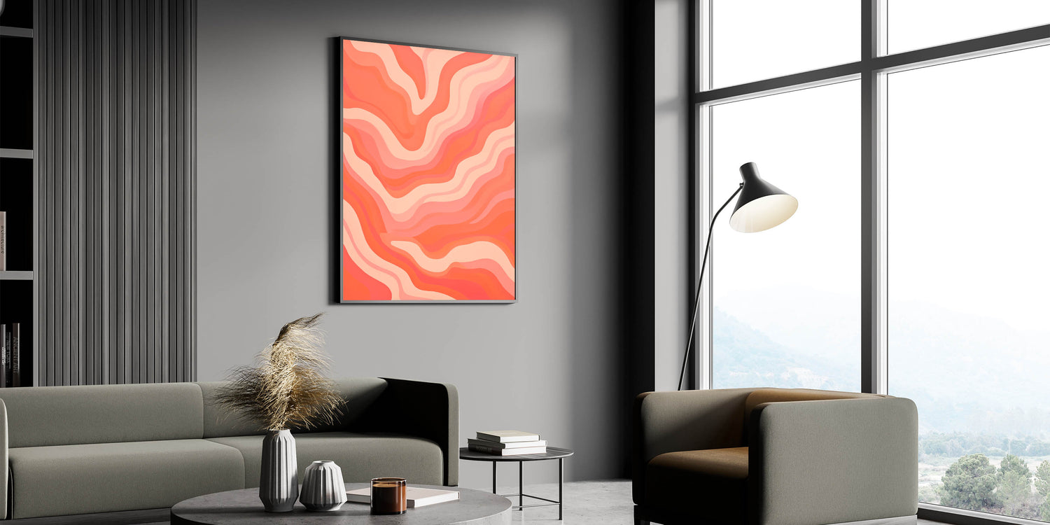 Transform your space with this bold maximalist wall art, featuring a vibrant abstract design of flowing waves in warm peach, coral, and pink tones. The undulating lines create a sense of movement and depth, making this artwork an ideal choice for adding a touch of dynamic energy to modern or eclectic interiors. Perfect for living rooms, bedrooms, or creative spaces, this piece brings warmth and a playful yet sophisticated touch to any decor.