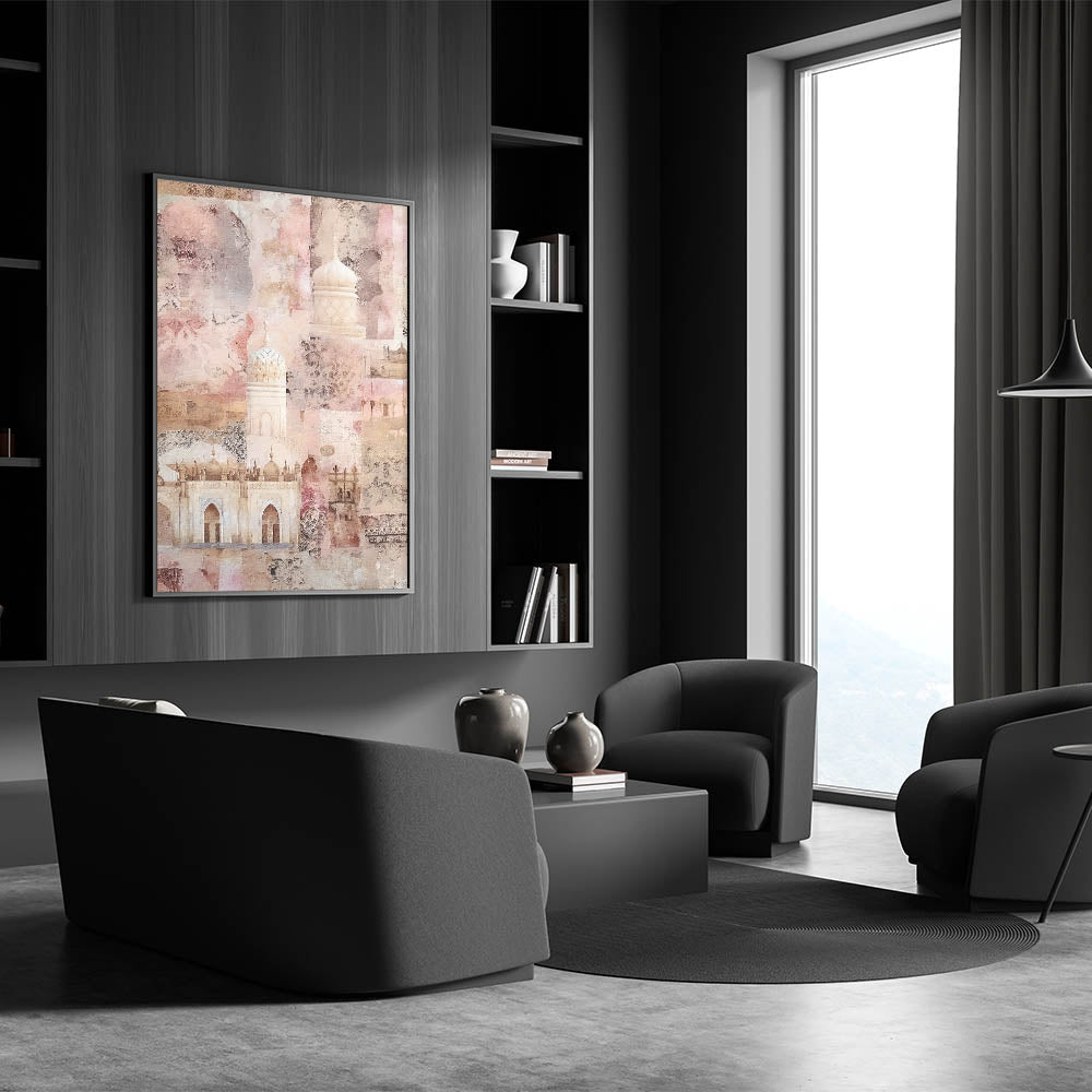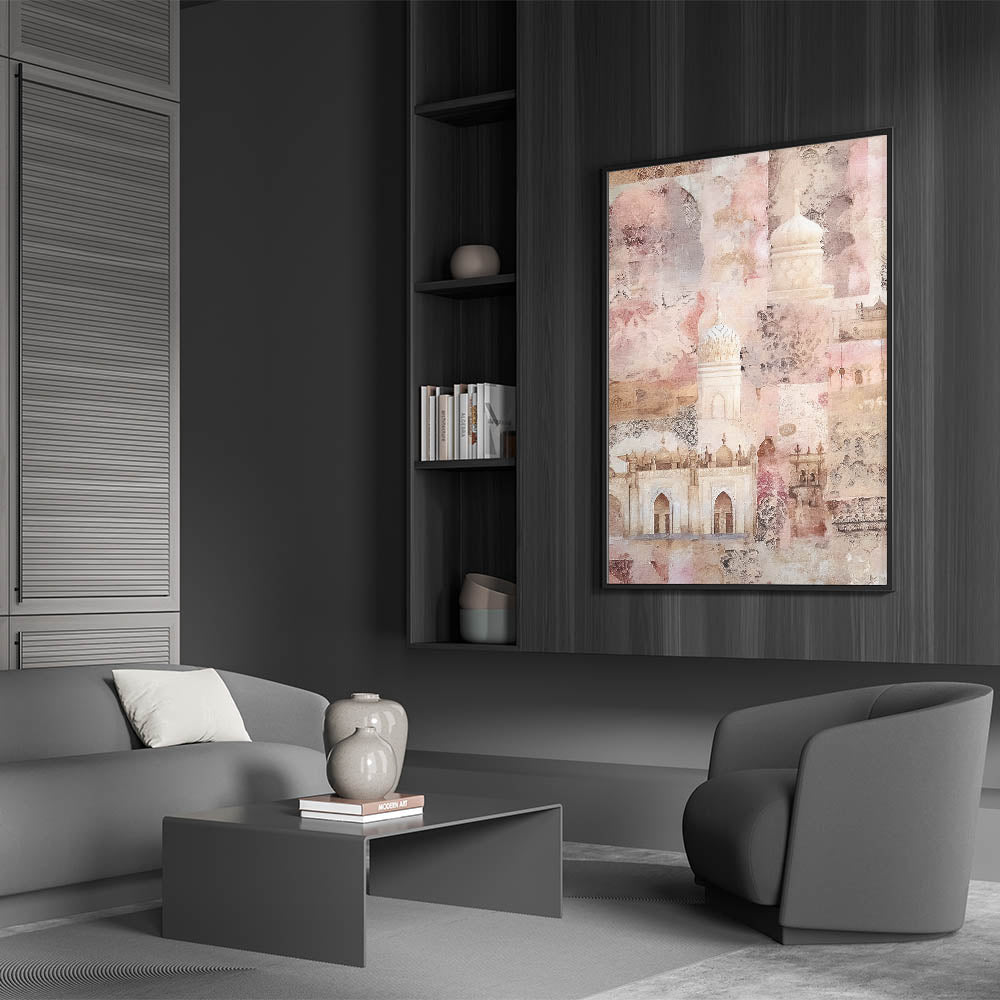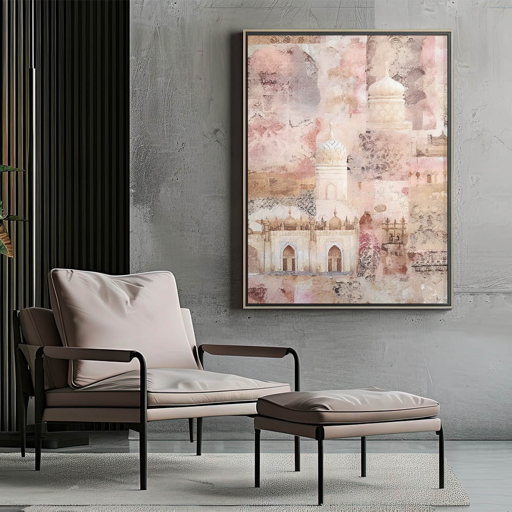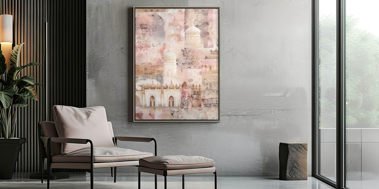 Add a touch of elegance to your space with this minimalist architecture art, capturing the essence of classical architecture through an abstract lens. This artwork combines soft pinks, warm beiges, and earthy tones, creating a vintage-inspired look that exudes sophistication and charm. Featuring intricate architectural details, it draws on cultural and historical motifs, making it an ideal choice for eclectic or bohemian interiors.