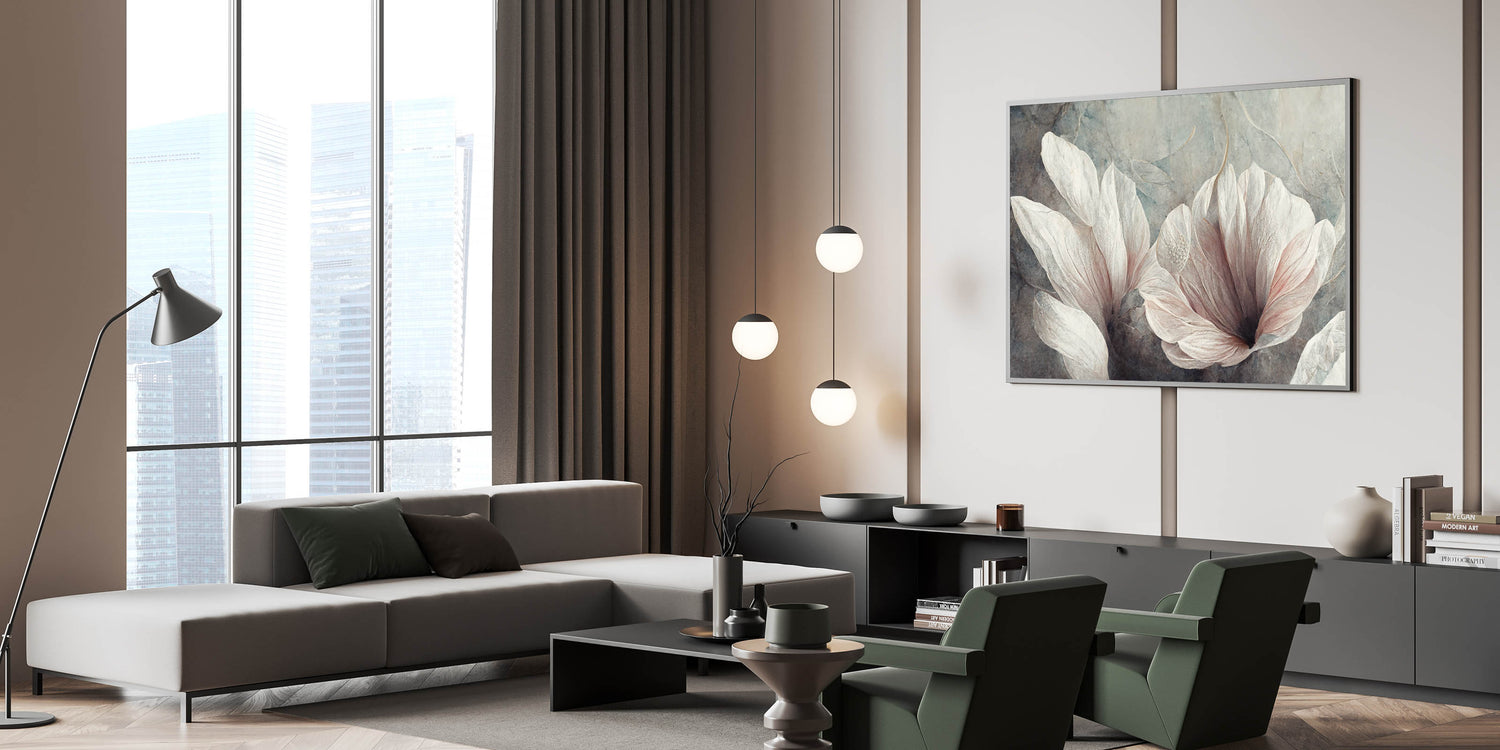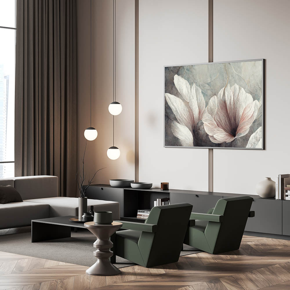 Modern Canvas & Framed Print - Soft Floral Living Room Wall Art
