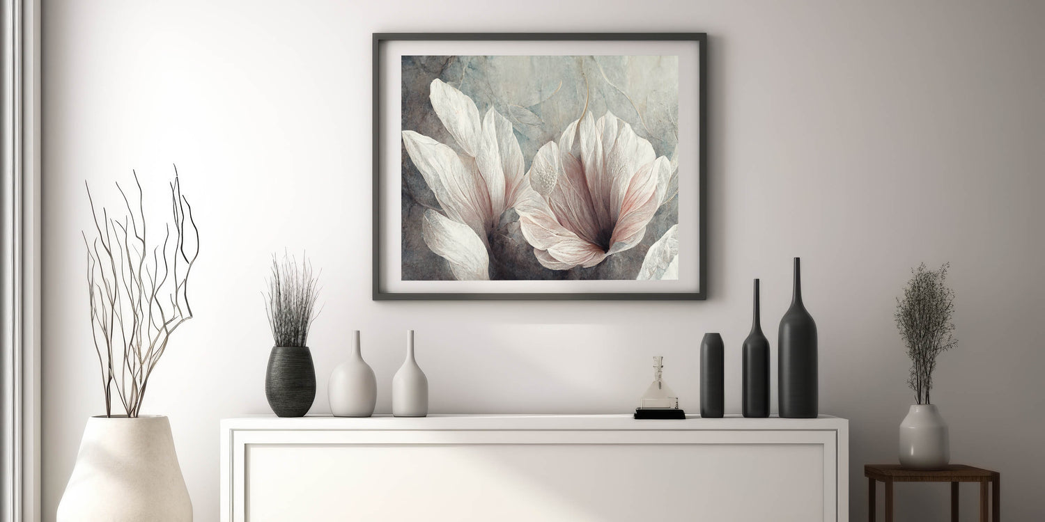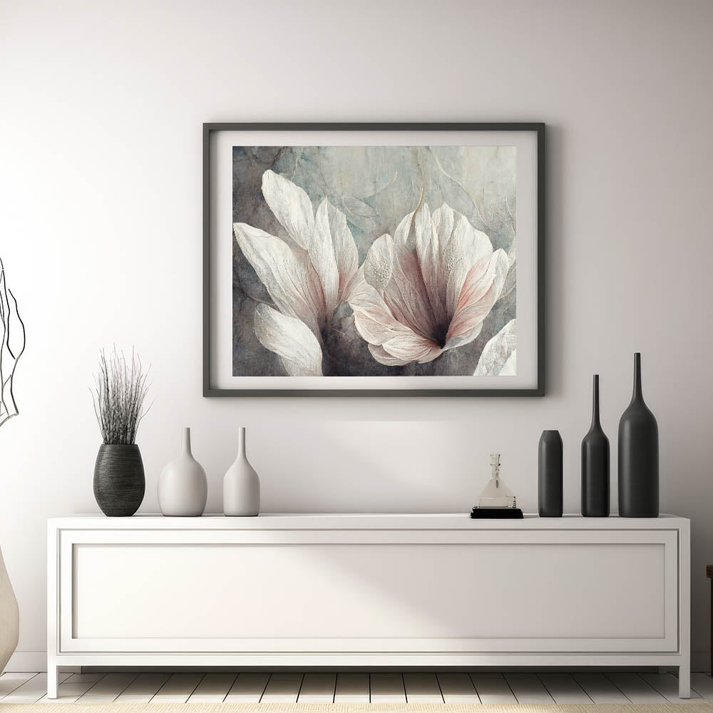 This framed art print is ideal for those looking for abstract canvas art with a balance of nature and elegance. Whether as a statement large wall art piece or a subtle accent, this floral composition enhances any space with its timeless beauty.