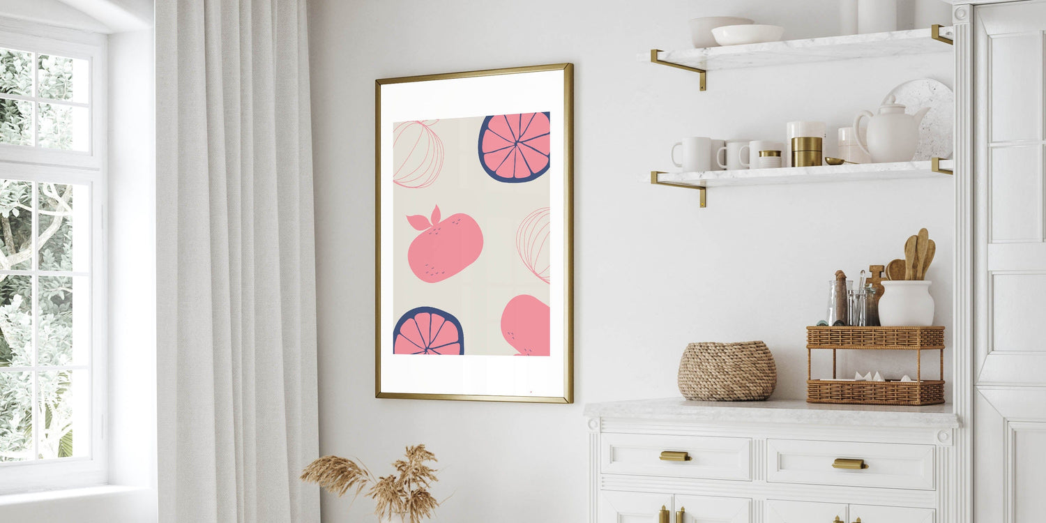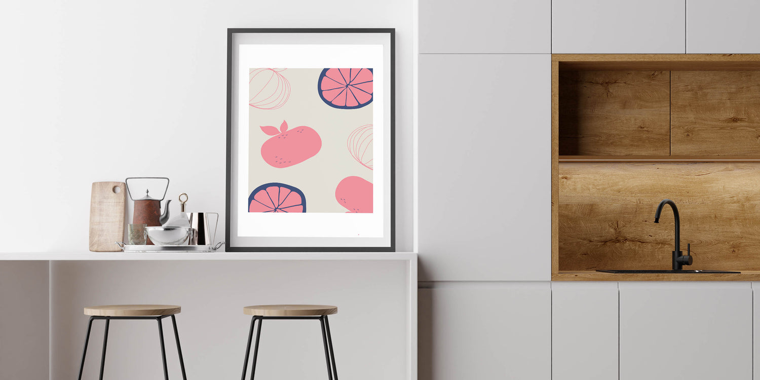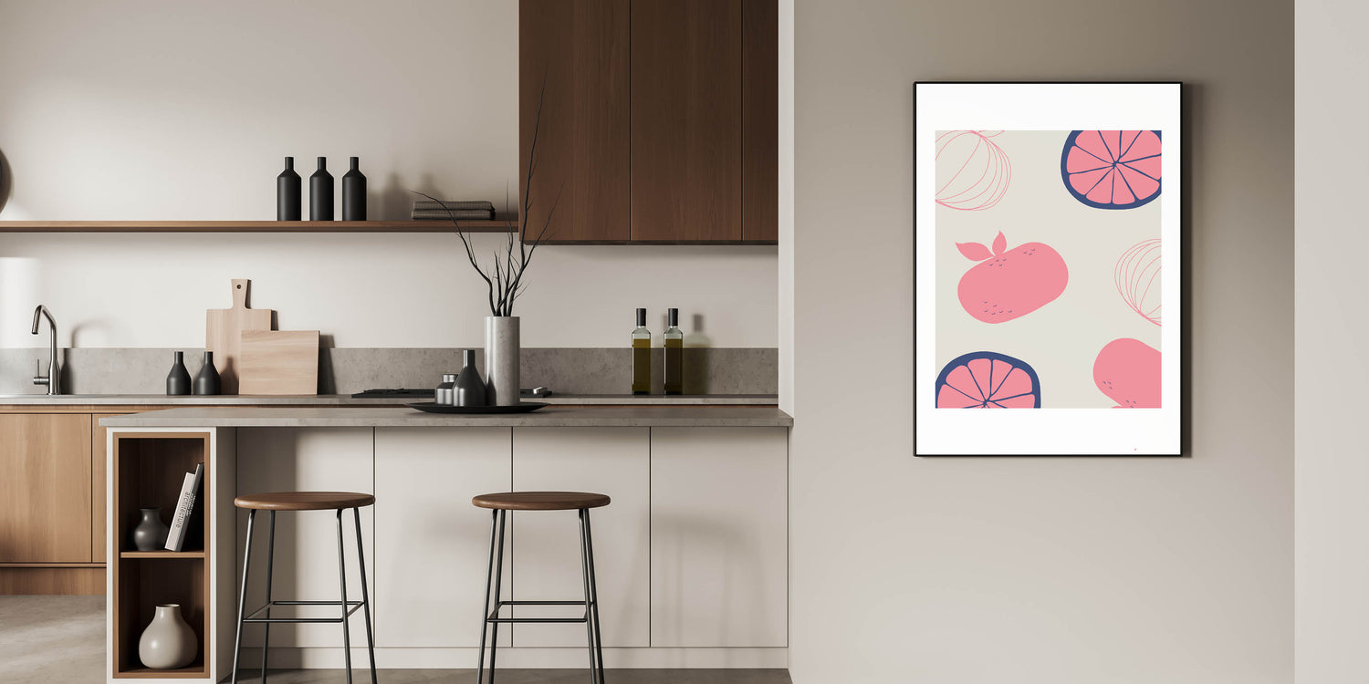 - Abstract & Contemporary Design – A stylish take on classic fruit poster art with modern shapes and soft color contrasts.