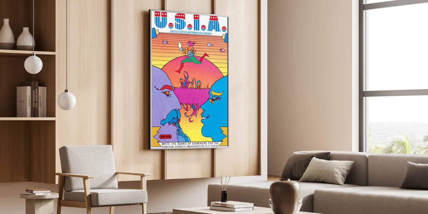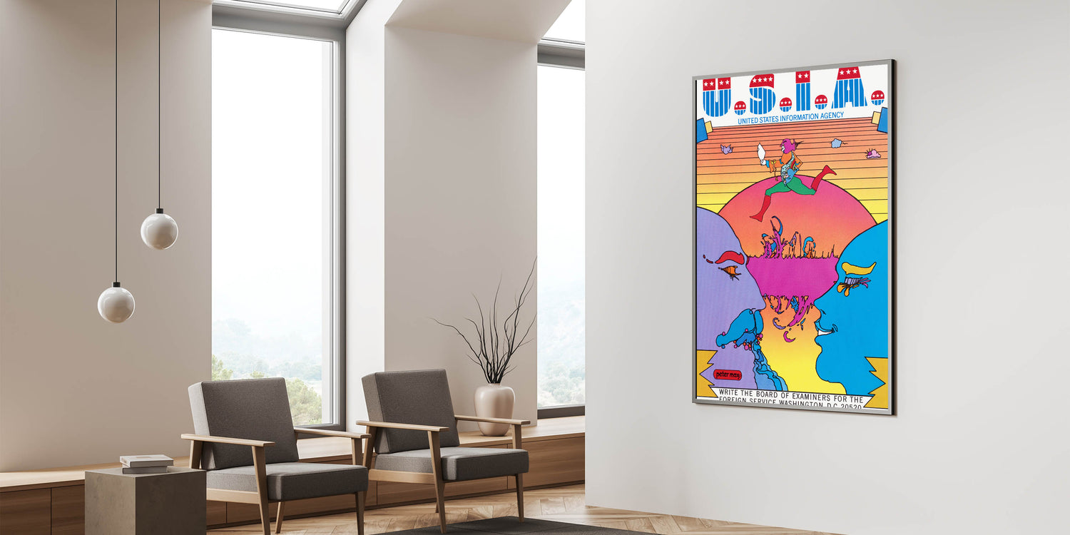 Modern Wall Art: Bold U.S.I.A. Psychedelic Poster by Peter Max