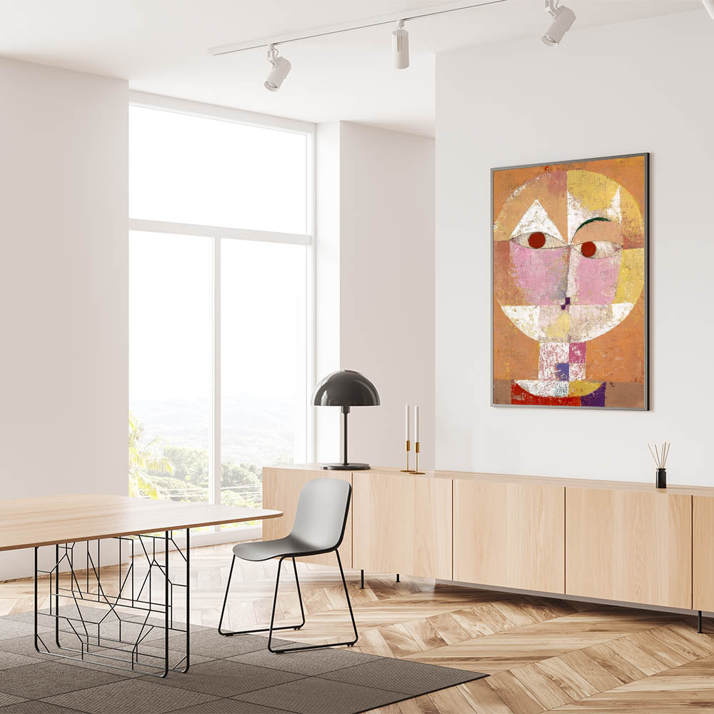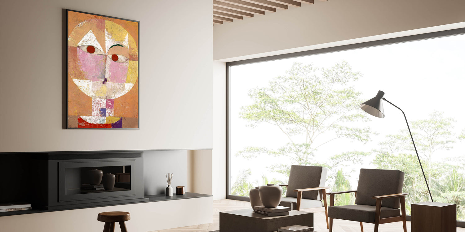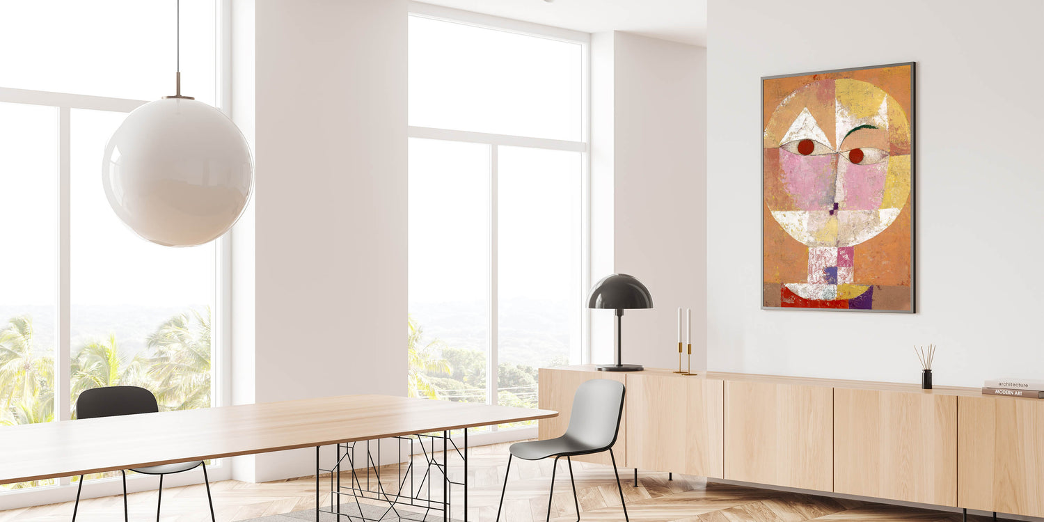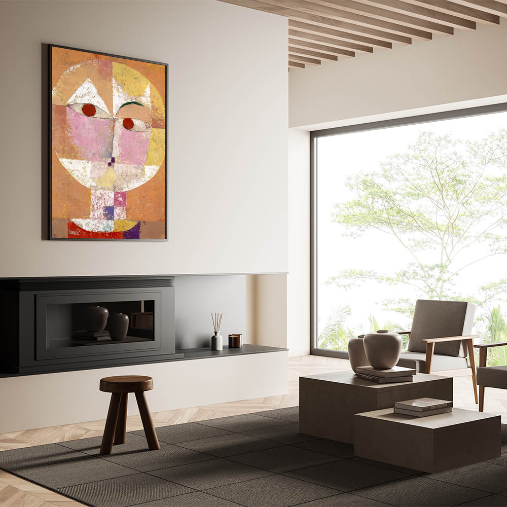 Introduce a bold and imaginative touch to your home with this stunning "Senecio Portrait" Modern Wall Art. Inspired by Paul Klee's 1922 masterpiece, this piece combines vivid colors and geometric shapes to create a striking depiction of human expression. Perfect for those who love abstract modern art and want to add a distinctive charm to their interior design.