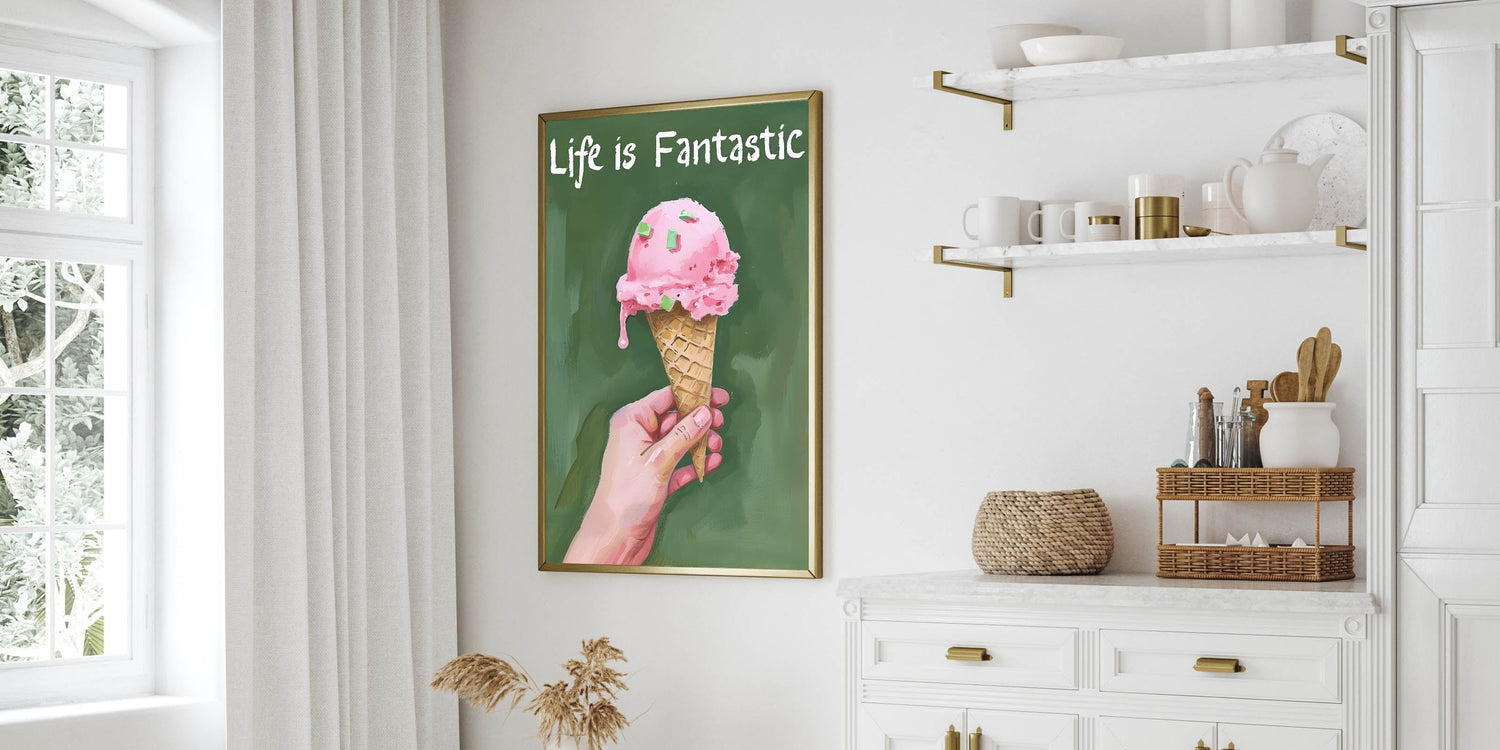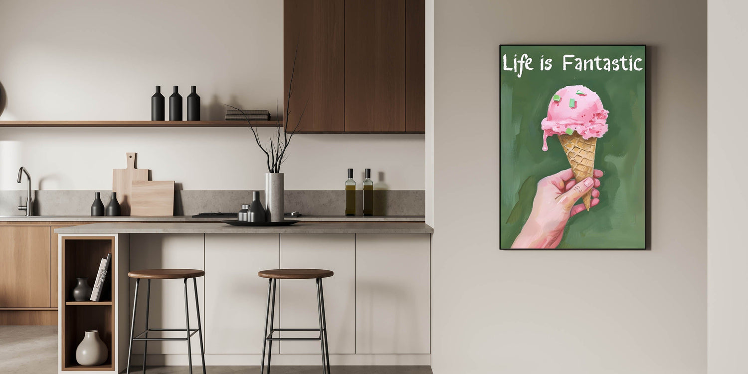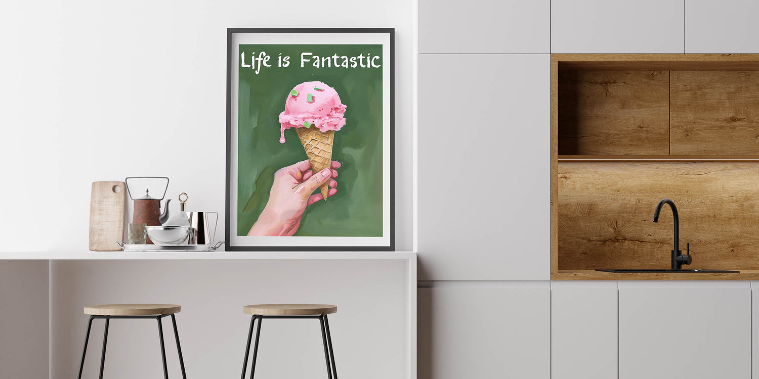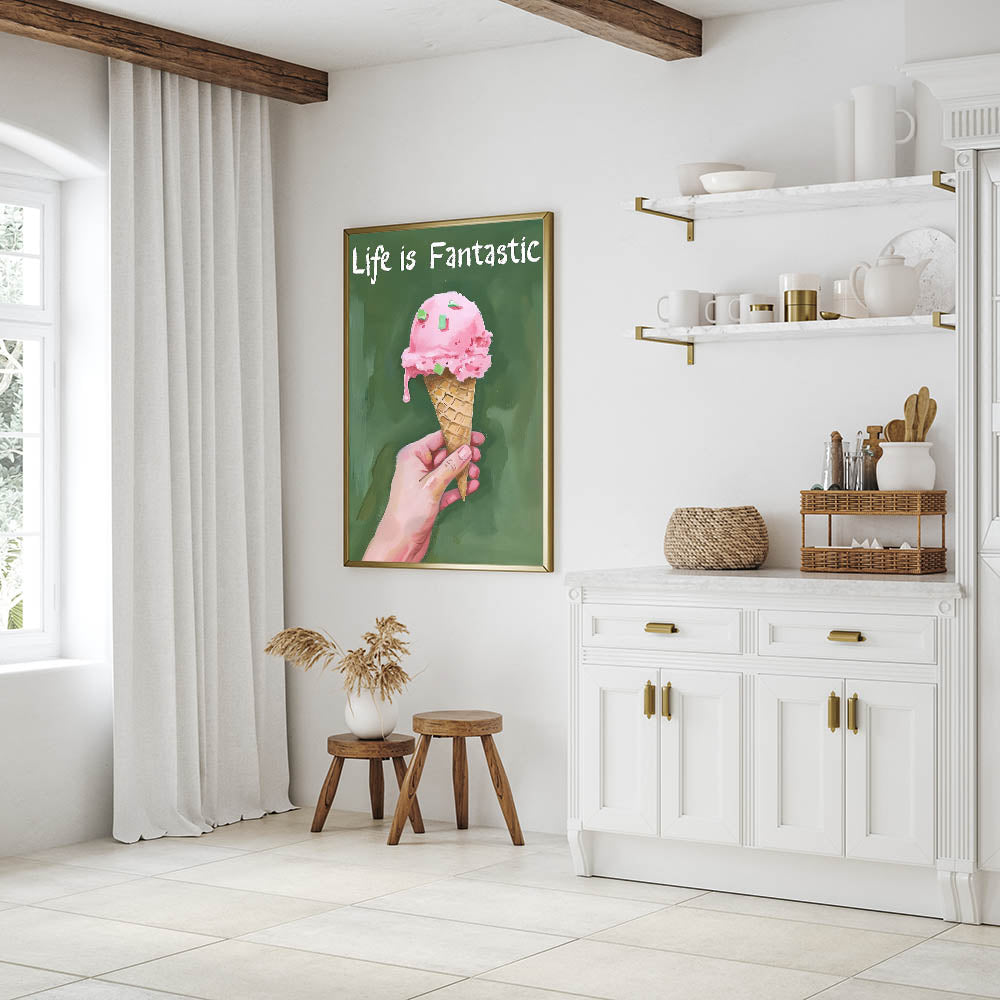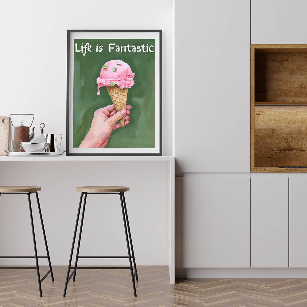 Motivational Kitchen Wall Decor - Life is Fantastic Ice Cream Print