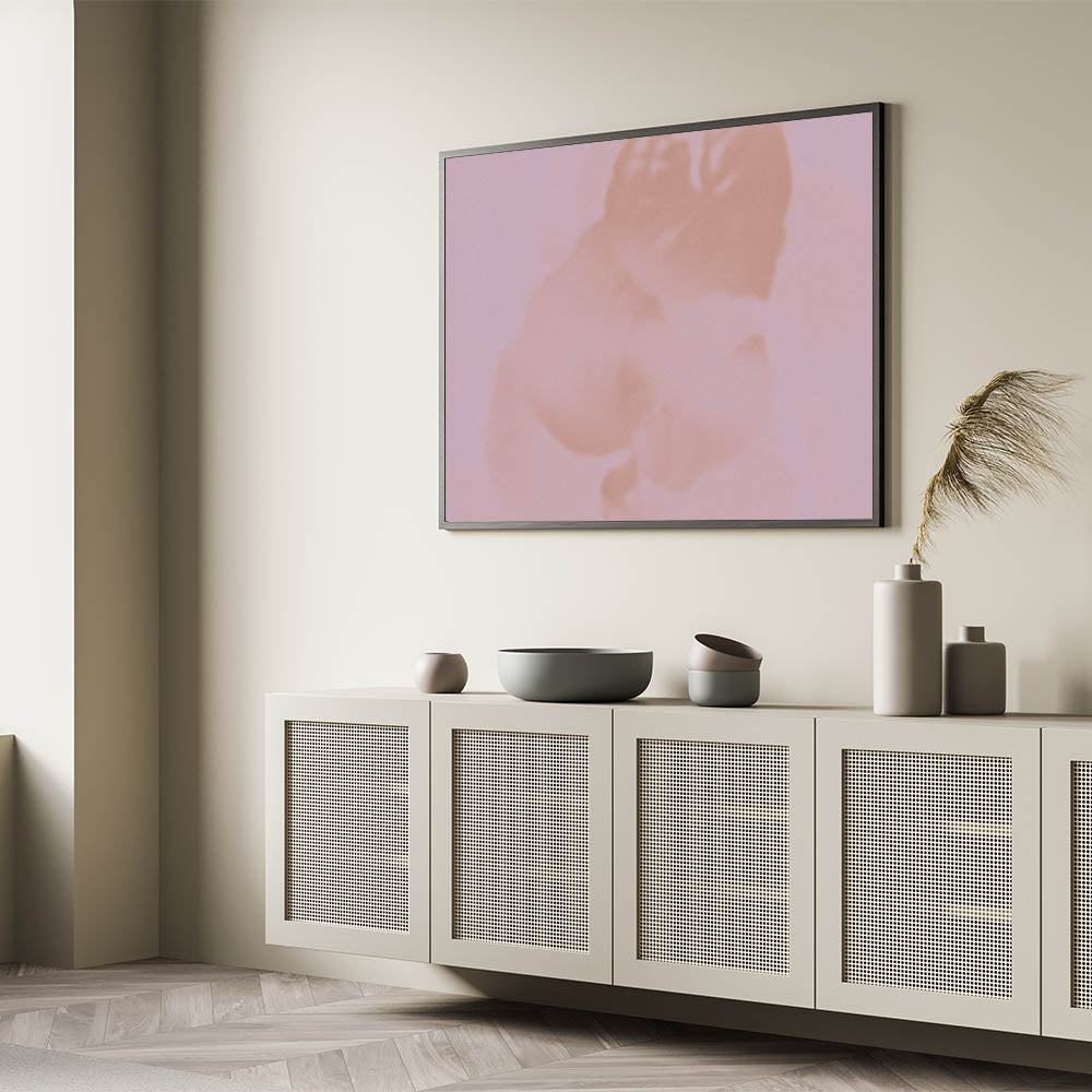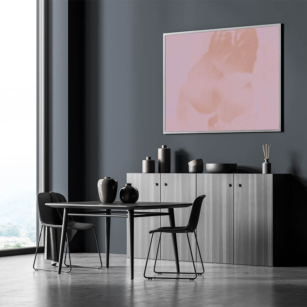 This elegant, nature-inspired artwork features an abstract floral design in soft pink tones, enhanced with grainy gradients that evoke the delicate beauty of flowers in bloom. The flowing shapes and gentle hues create a sense of tranquility and calm, making this piece a perfect addition to any modern or minimalist space. The combination of organic shapes and soothing gradients makes this artwork versatile and visually captivating.