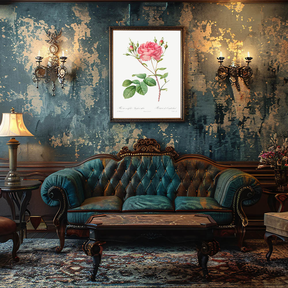 - Elegant Neoclassical Aesthetic: Detailed and vibrant depiction that brings life to the classic rose.