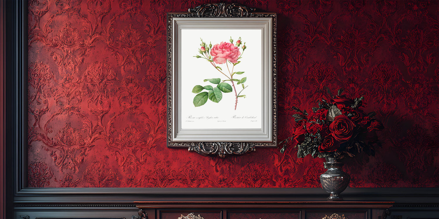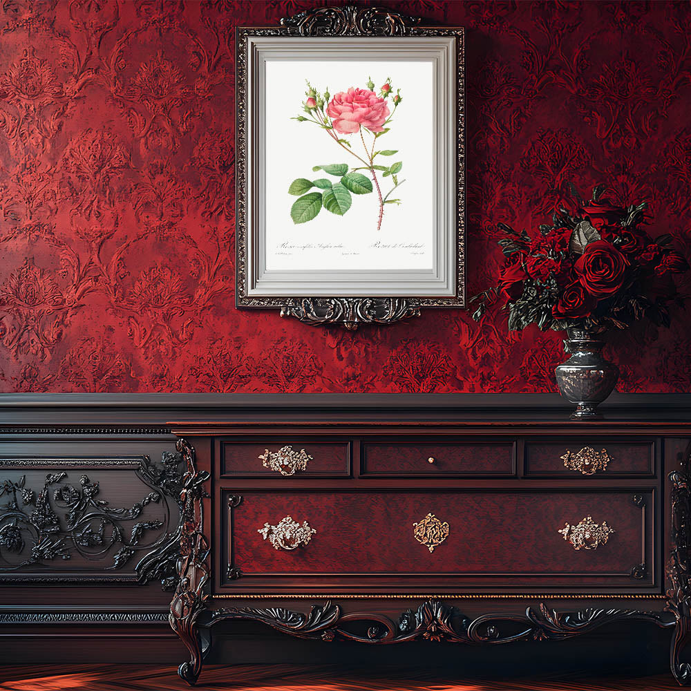 Neoclassical Art Prints: Rosa Centifolia Anglica Rubra by Redouté
