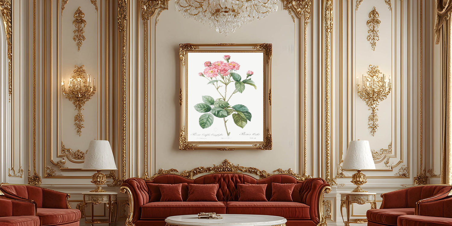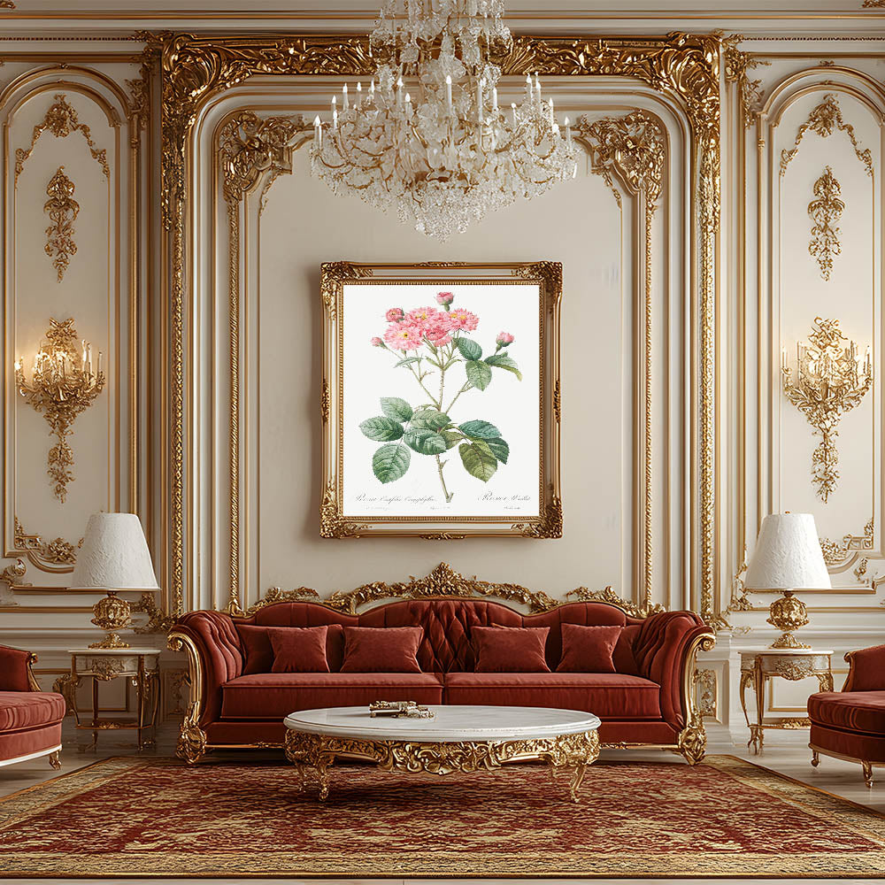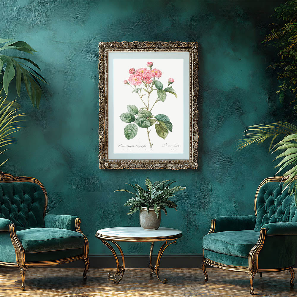 Neoclassical Cabbage Rose Print - Botanical Art by Redouté