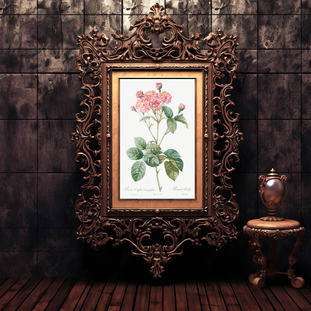 Bring a touch of classic botanical elegance to your decor with Carnation-Petalled Variety of Cabbage Rose (Rosa Centifolia Caryophyllea), expertly illustrated by Pierre-Joseph Redouté in his celebrated series, Les Roses. Known for his meticulous and lifelike floral depictions, Redouté captures the beauty of this delicate rose variety with its layered pink petals and vibrant green leaves. This print reflects the Neoclassical fascination with natural beauty, symmetry, and idealized forms, making it a perfect addition to any space inspired by classical antiquity.