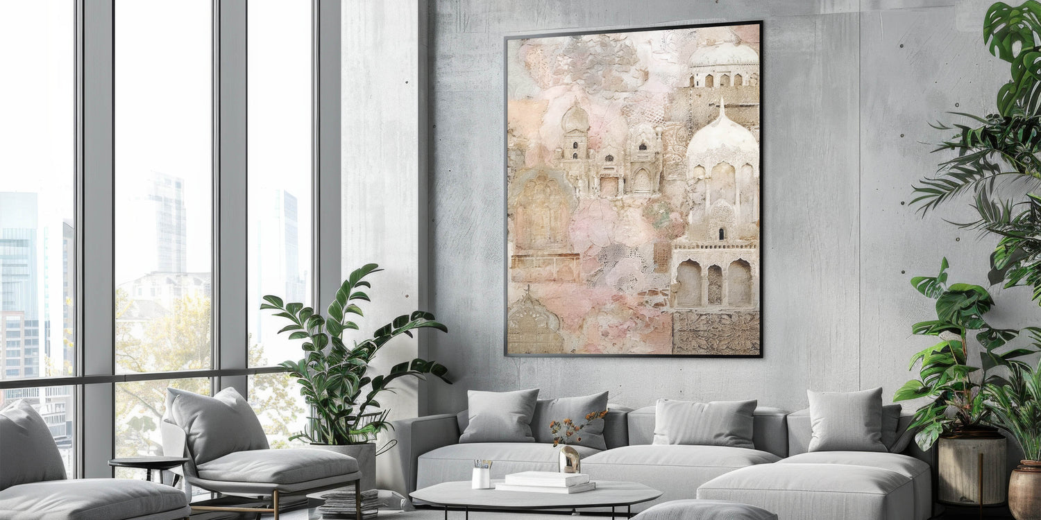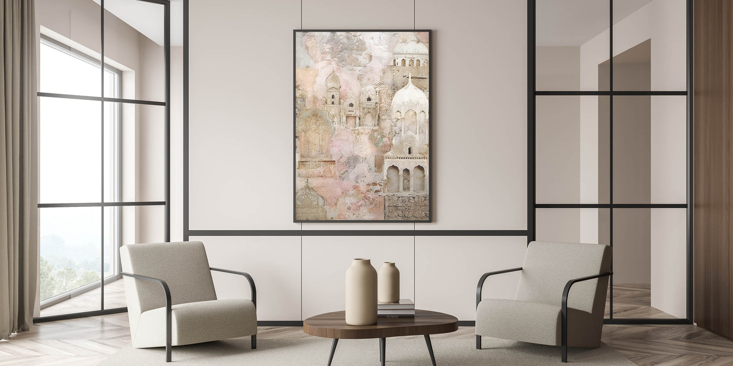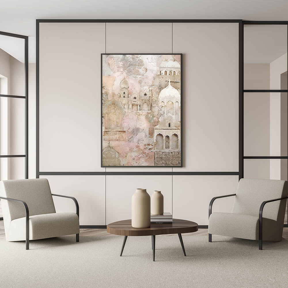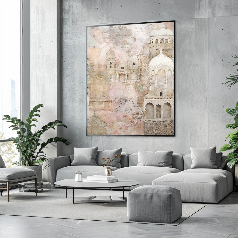 Ornate Abstract Architecture Wall Art - Beige and Blush Pink Print