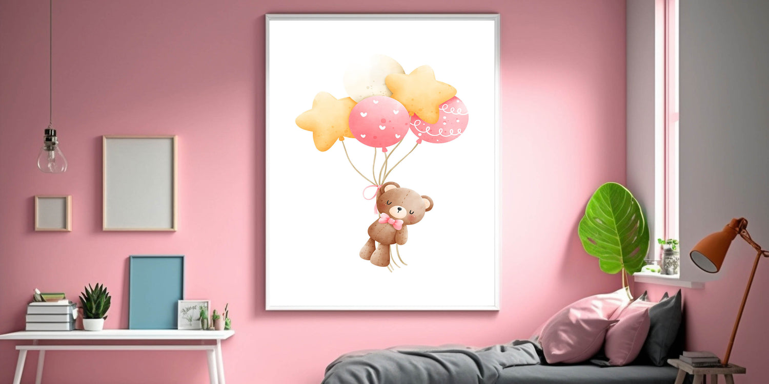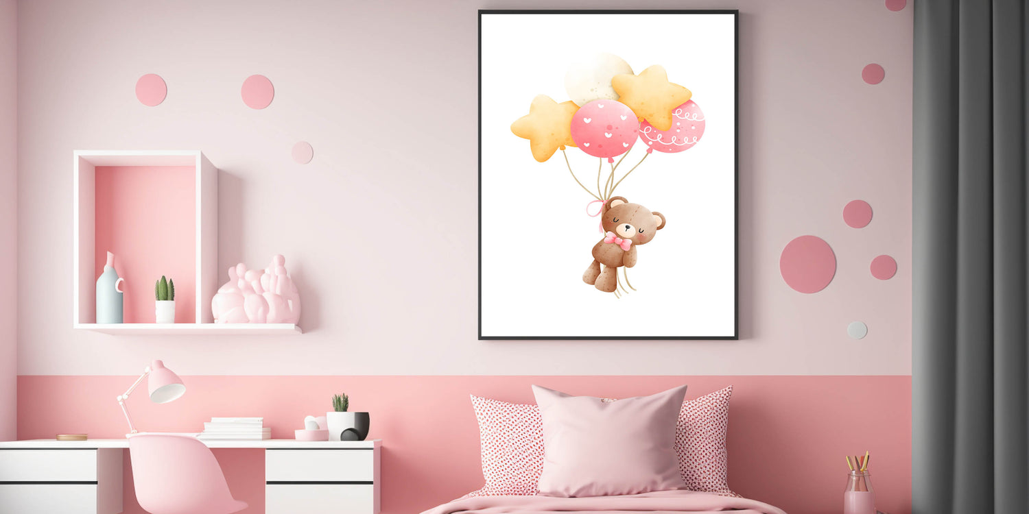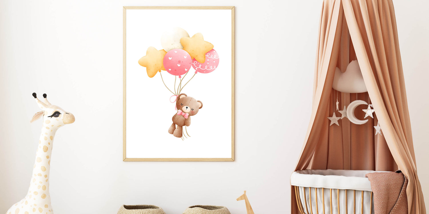 Let your little one’s imagination soar with this high-quality, heartwarming teddy bear art print.