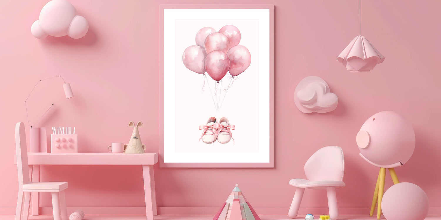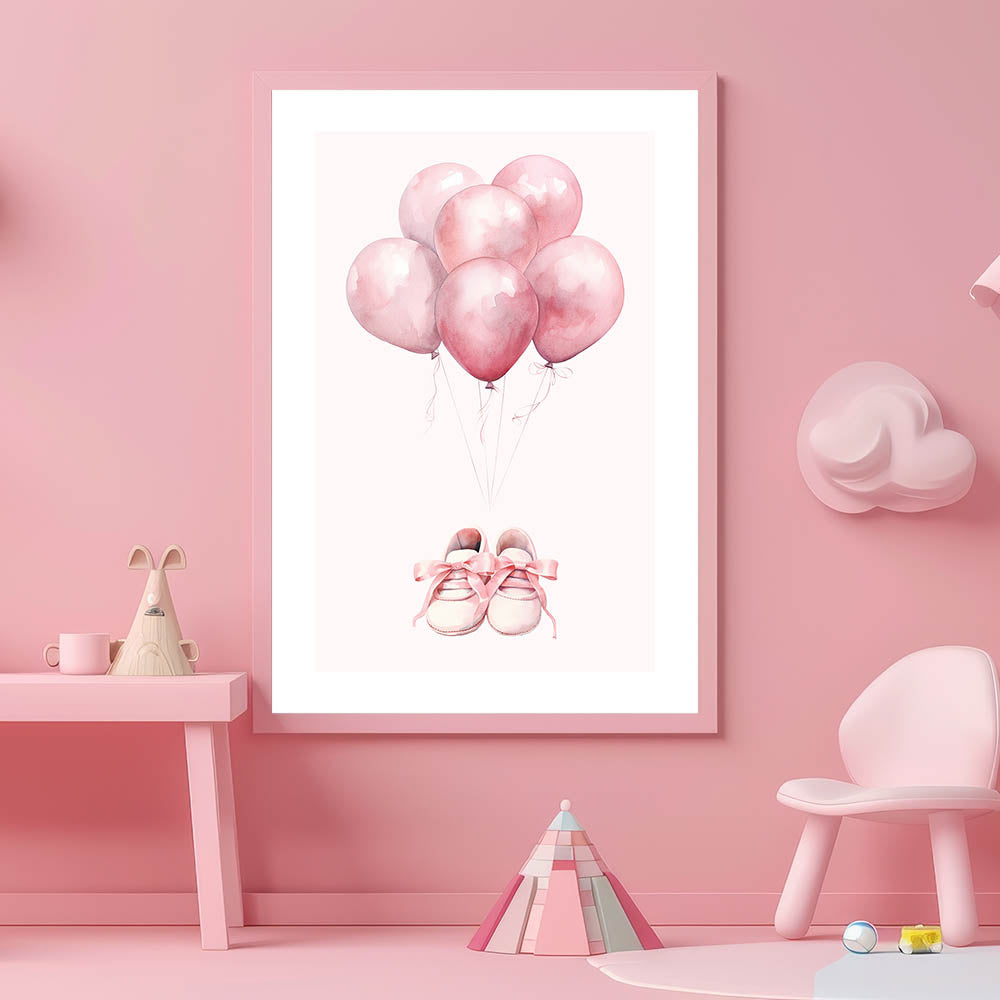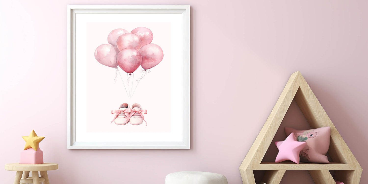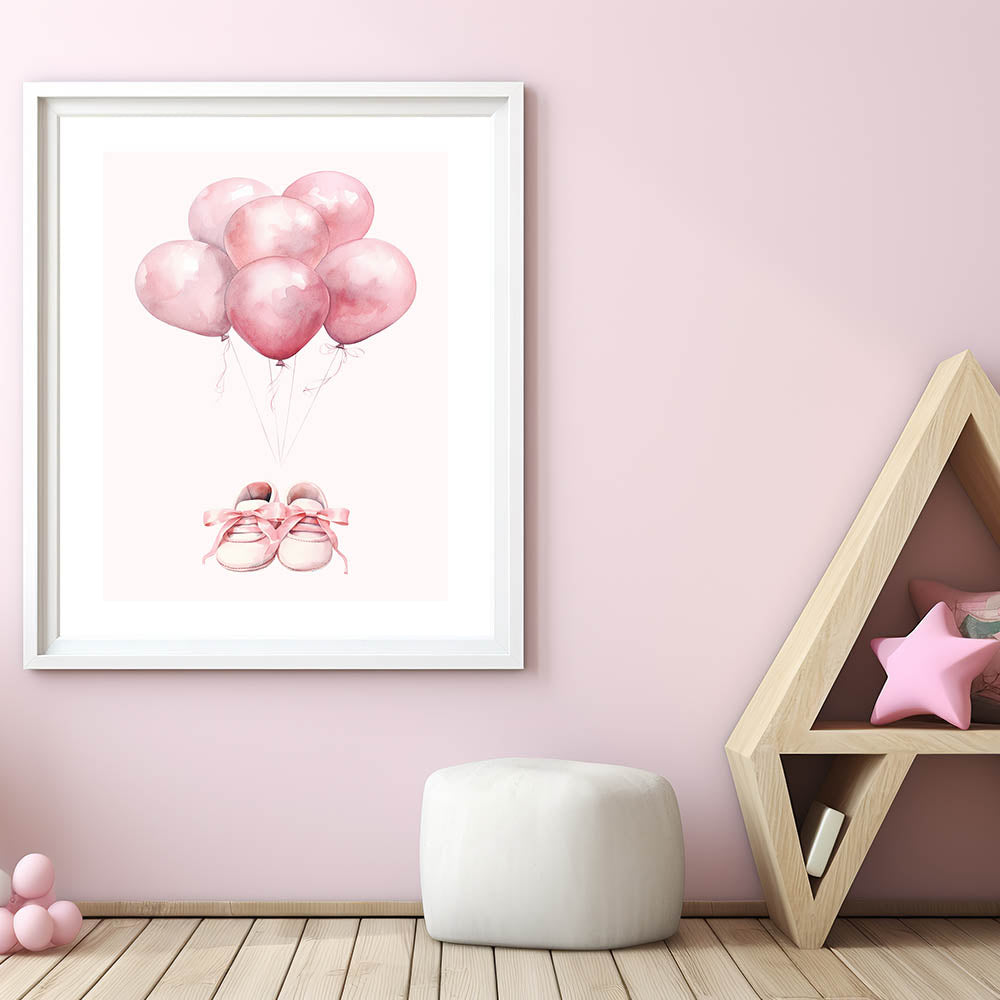 Pink Balloons & Baby Shoes Print - Nursery Wall Art