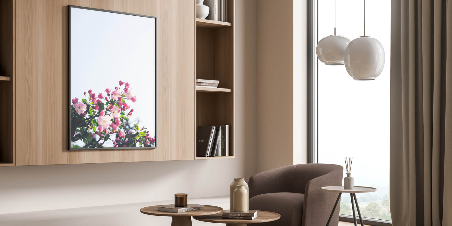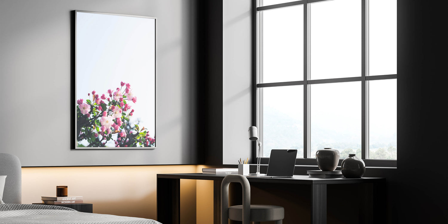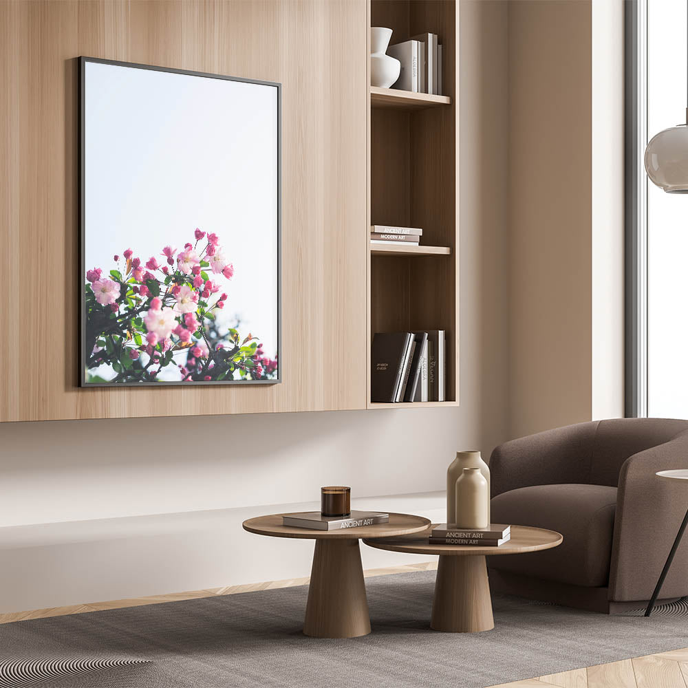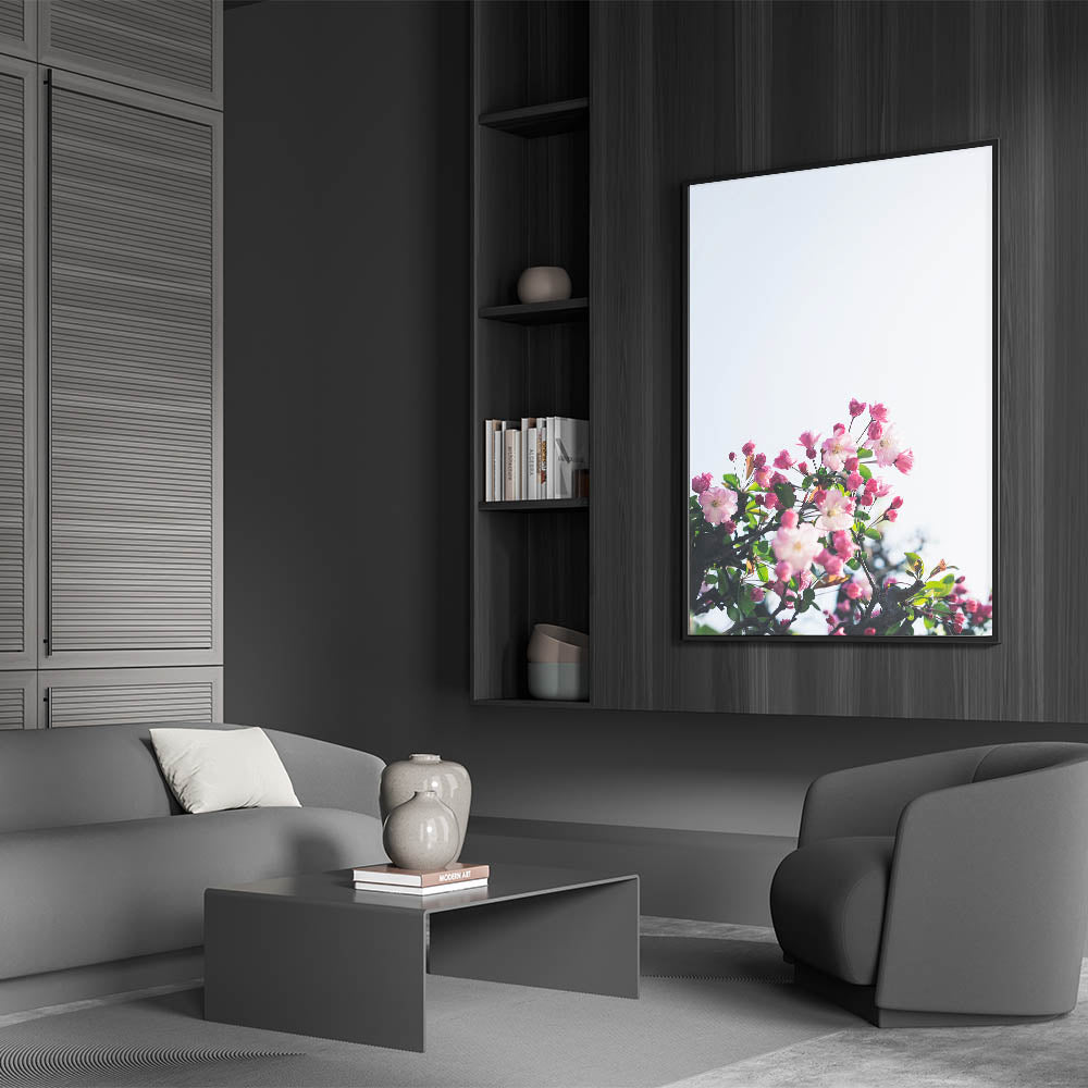 Celebrate the beauty of spring with this stunning Spring Wall Art, featuring delicate pink blossoms blooming against a soft, light-filled background. The contrast between the rich pink buds and the fresh green leaves creates a vibrant yet serene composition. This Floral Wall Art perfectly captures the essence of renewal and natural elegance, making it a beautiful addition to any space. The bright and airy aesthetic evokes feelings of freshness, calmness, and seasonal charm.