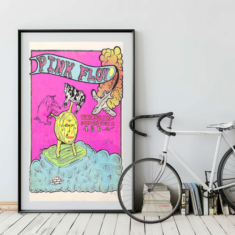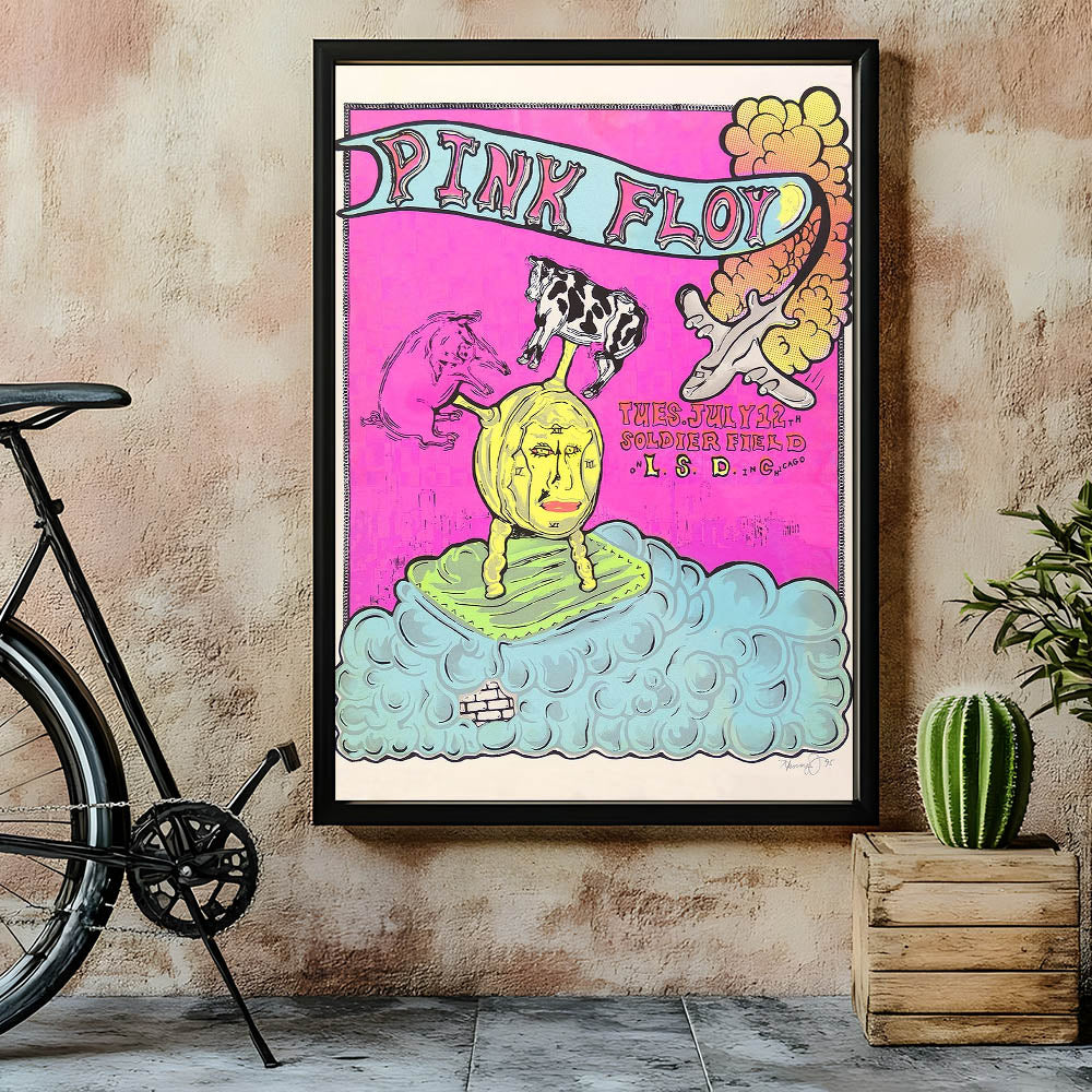 - Vintage Pink Floyd concert poster from their 1972 LSD Tour at Soldier Field, Chicago.