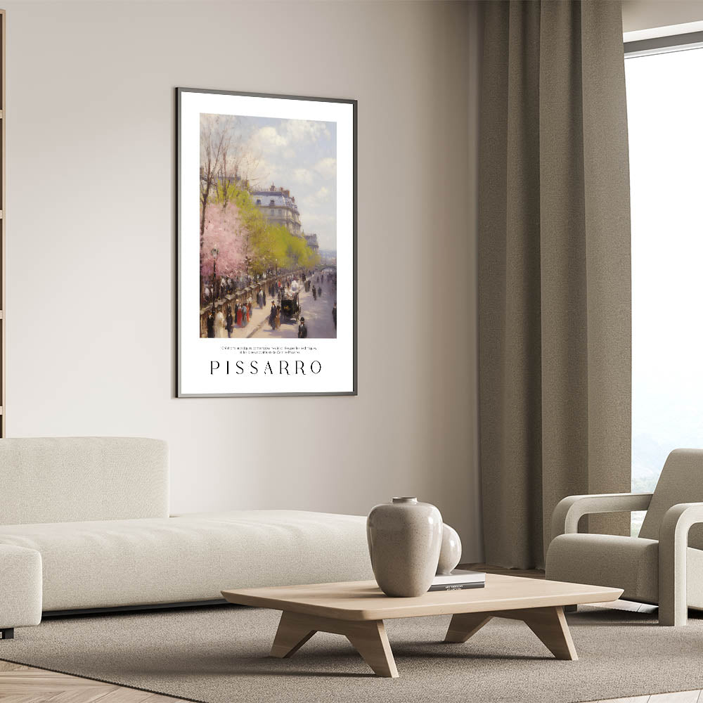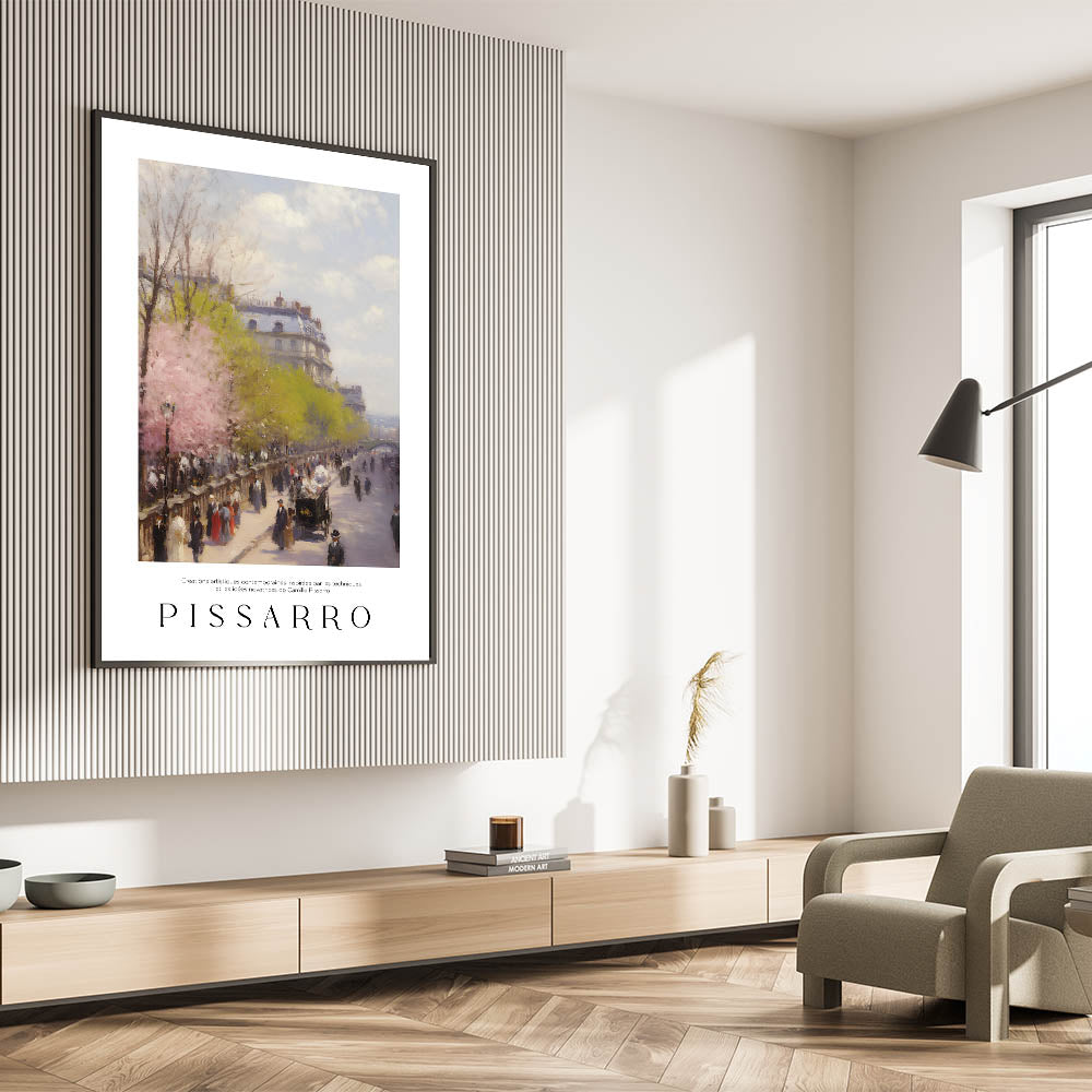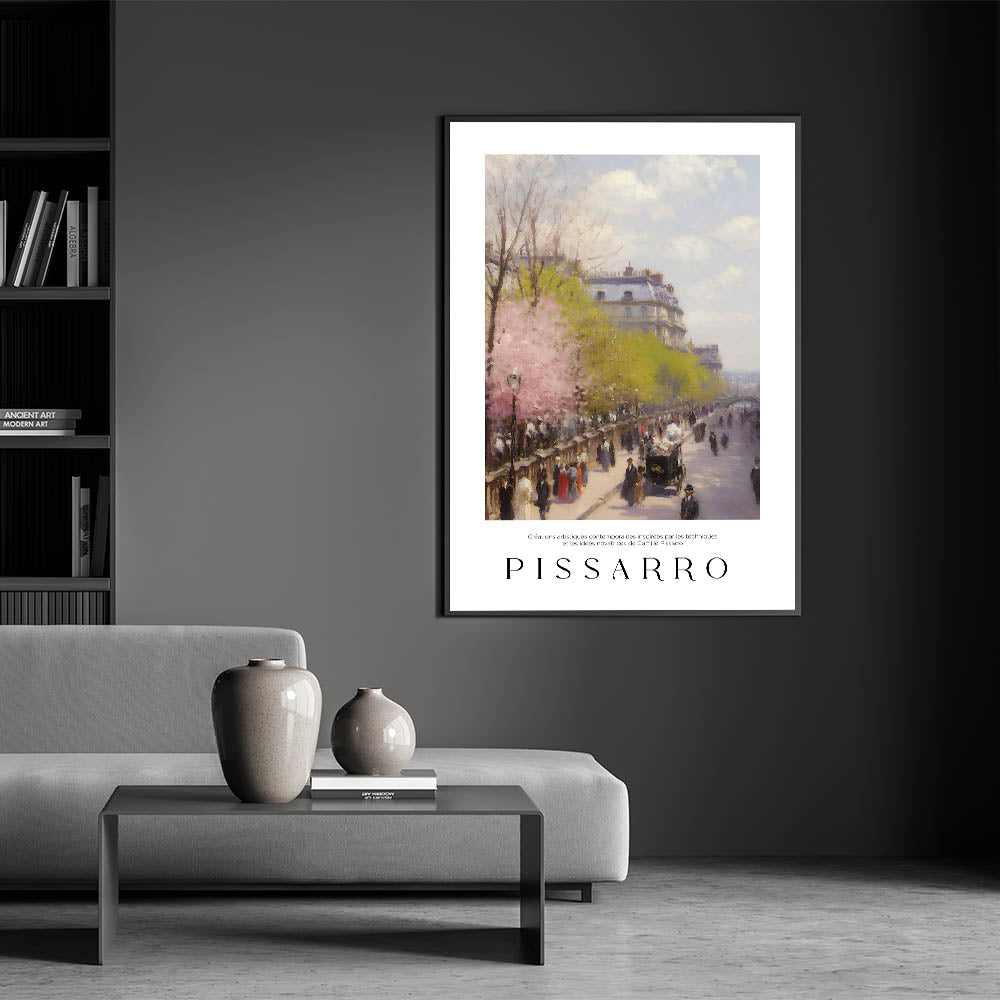 Experience the charm of spring in Paris with this Camille Pissarro-inspired Pissarro wall art, capturing a bustling boulevard surrounded by blooming trees. The soft pastels and delicate brushstrokes bring this lively cityscape to life, making it a perfect addition for anyone looking to incorporate Impressionist prints with an elegant, urban touch.