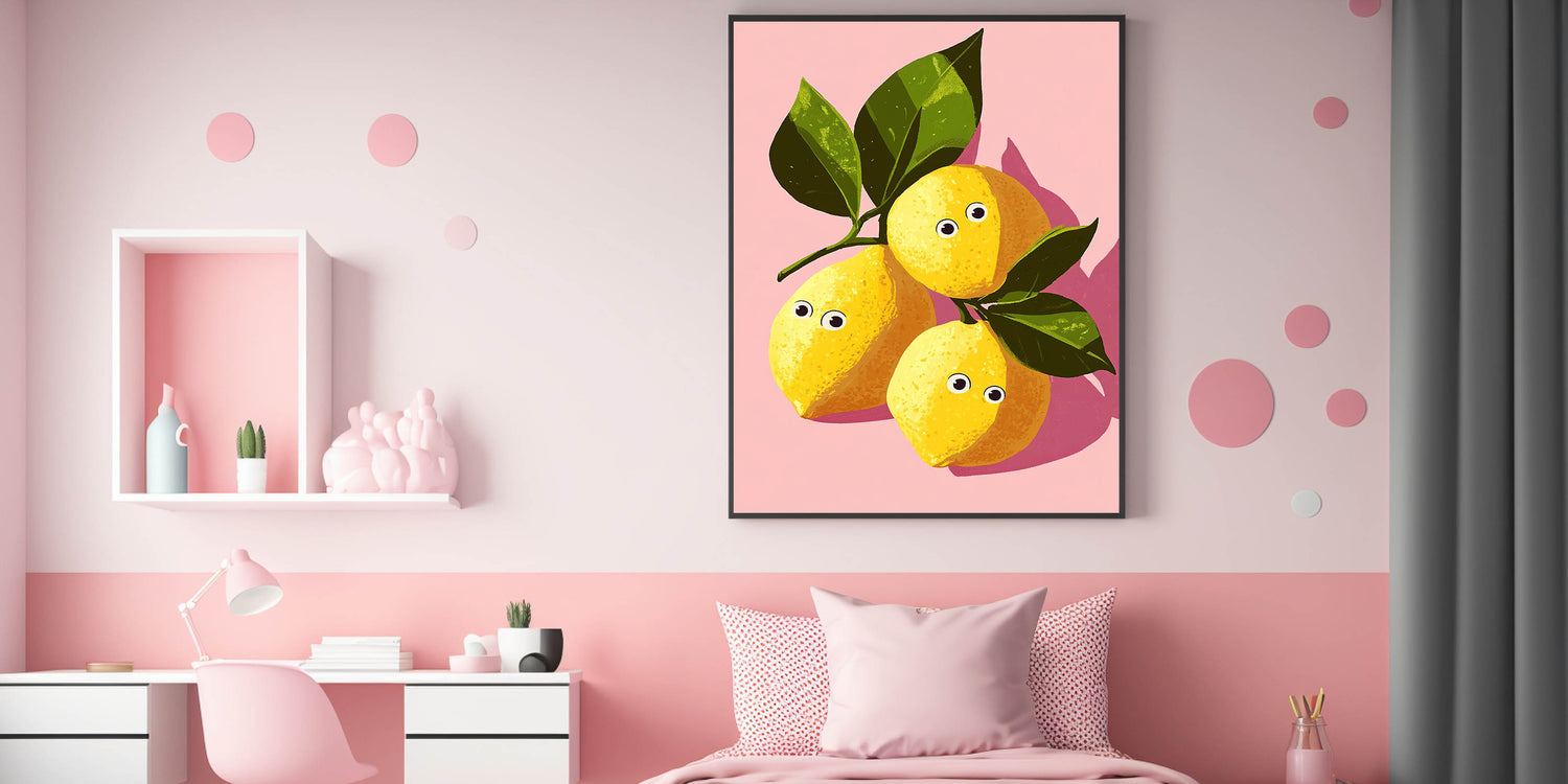 Playful Lemon Girls Room Wall Art – Kids Room Art Print