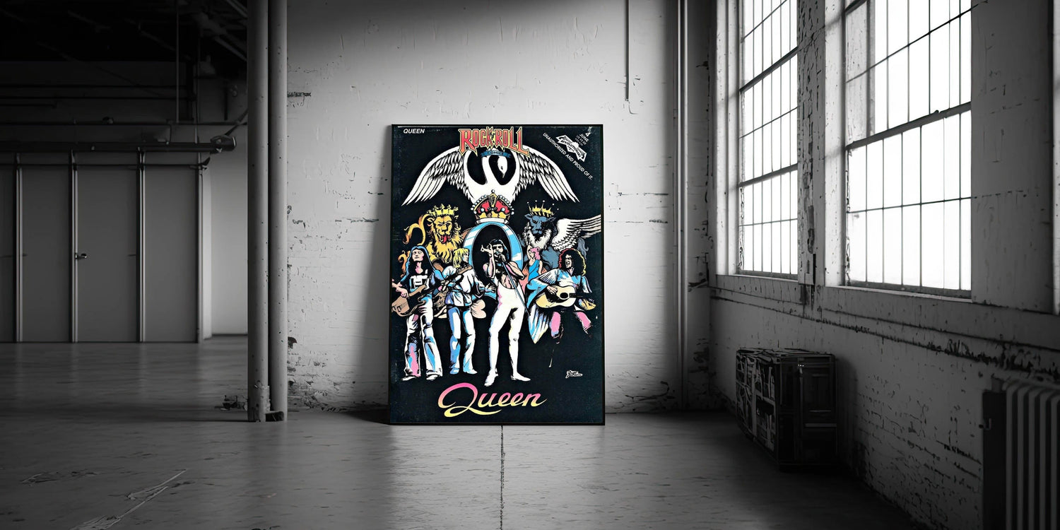 This one-of-a-kind poster immortalizes Queen's legendary status, capturing the band's iconic aesthetic in a truly original style. Add it to your collection and celebrate the unique legacy of Queen.