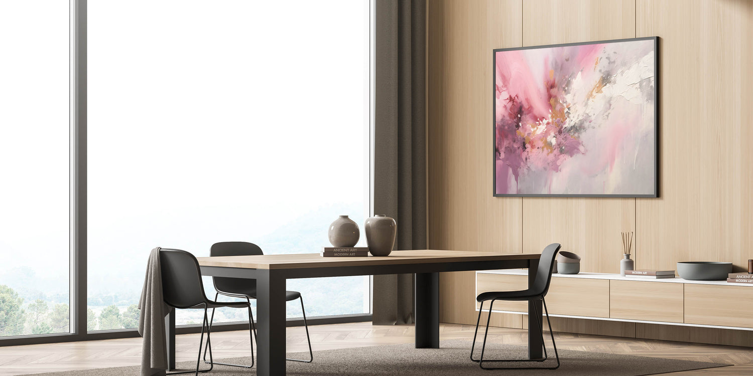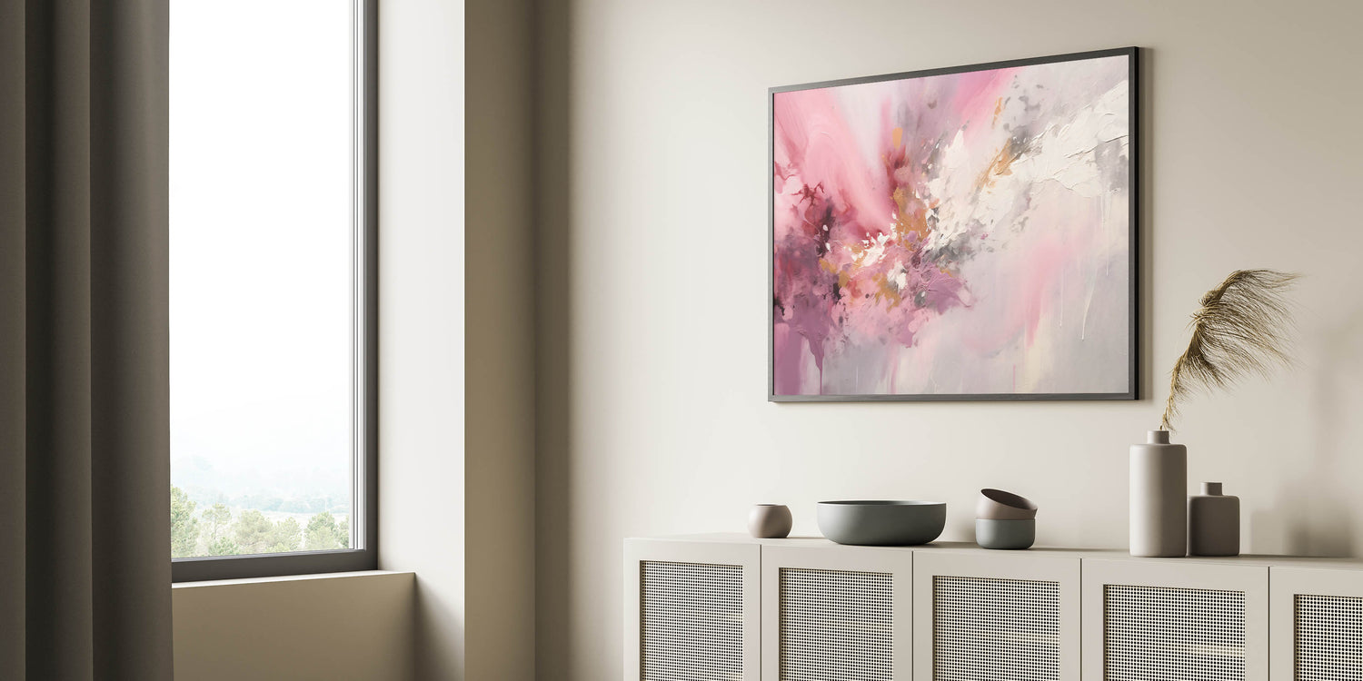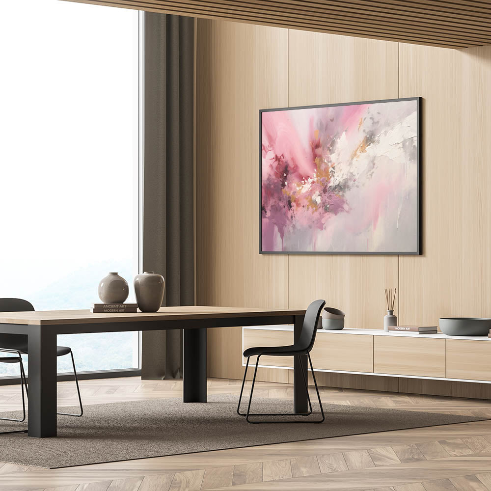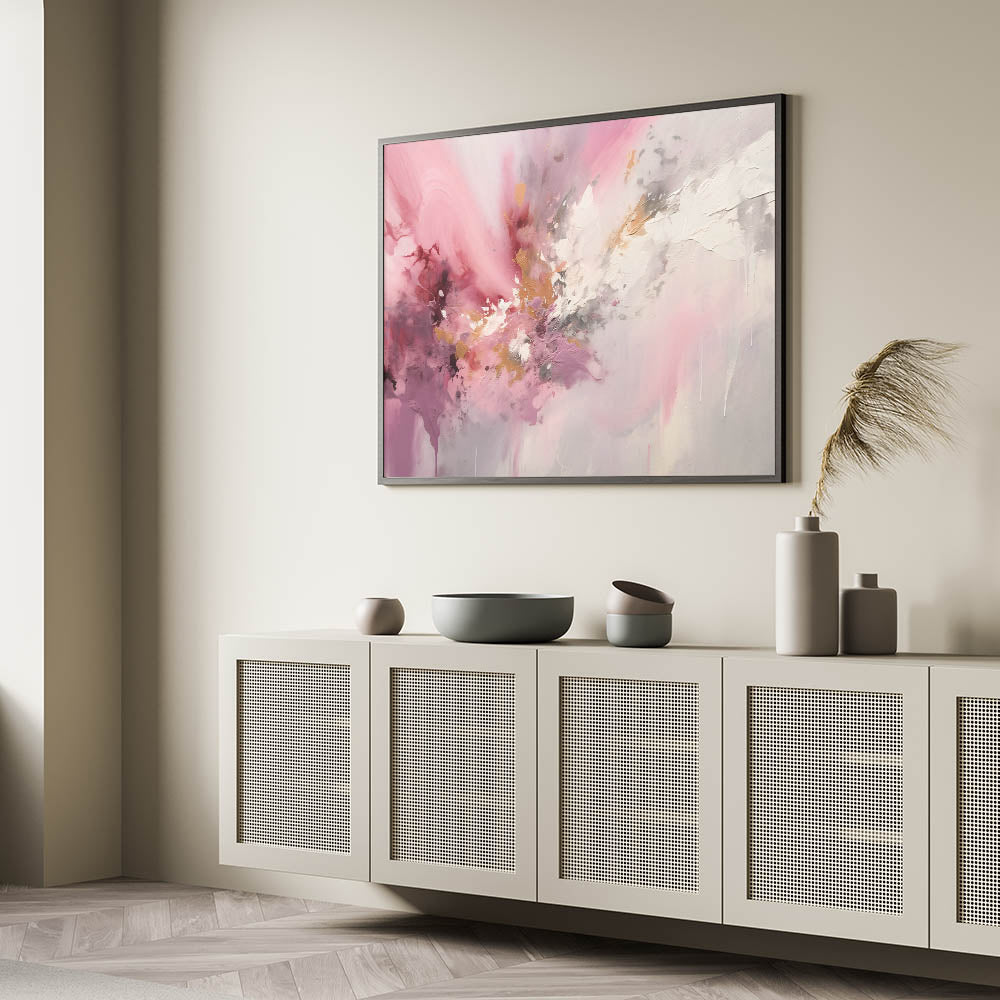 This artwork is ideal for those who appreciate a soft, romantic aesthetic. Its beautiful blend of blush tones and gentle brush strokes brings warmth and elegance to any interior space, making it a timeless addition to your decor.