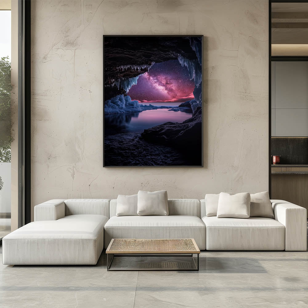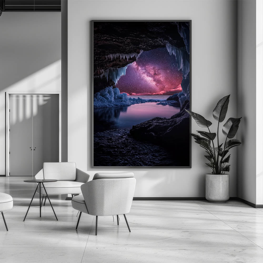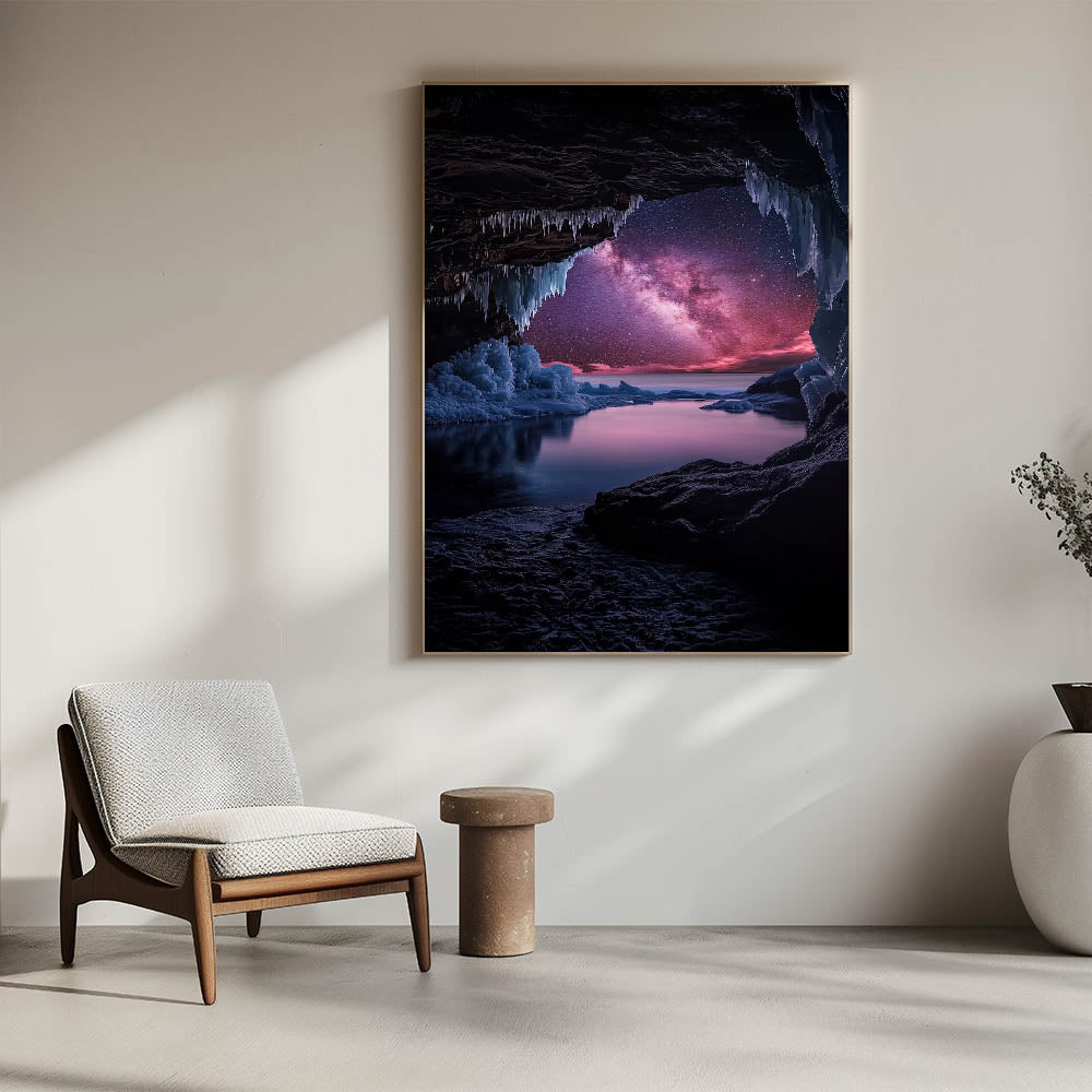Bring the magic of the cosmos and the icy cavern into your decor with this striking piece of art. A perfect gift for stargazers and nature enthusiasts, this print will transform any room into a serene and awe-inspiring retreat.