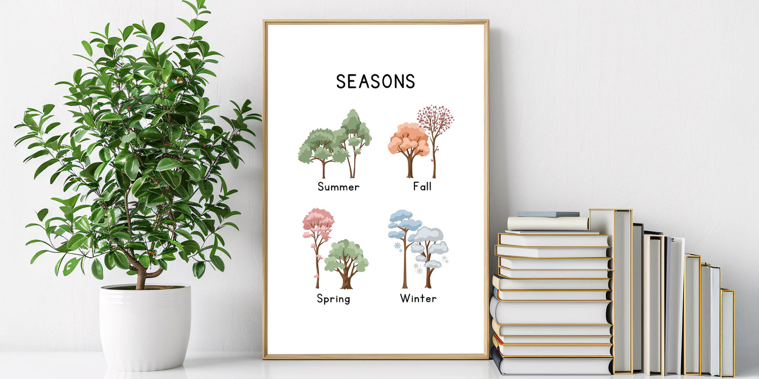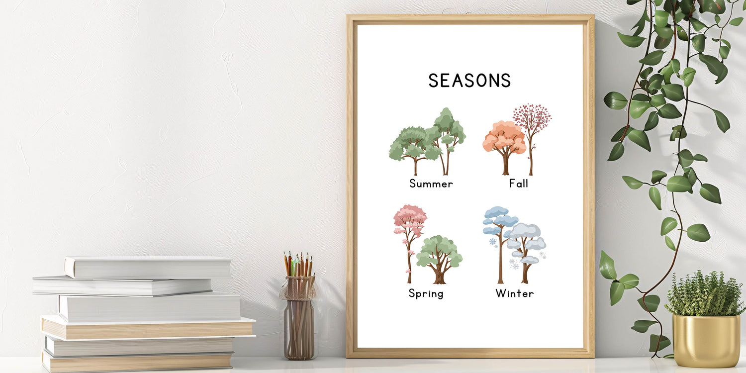 Seasons of the Year Typography Art Print – Summer, Fall, Spring, Winter Wall Art