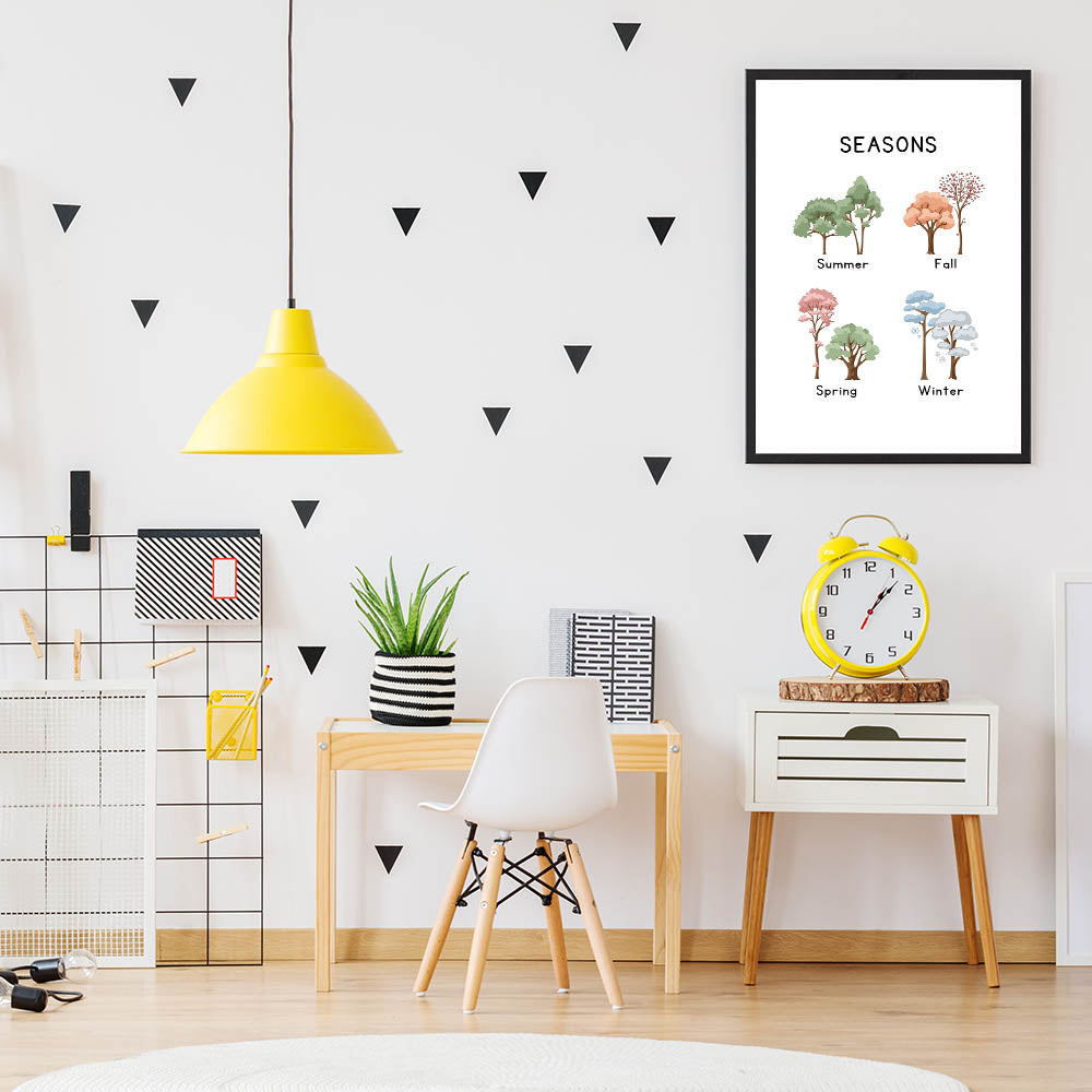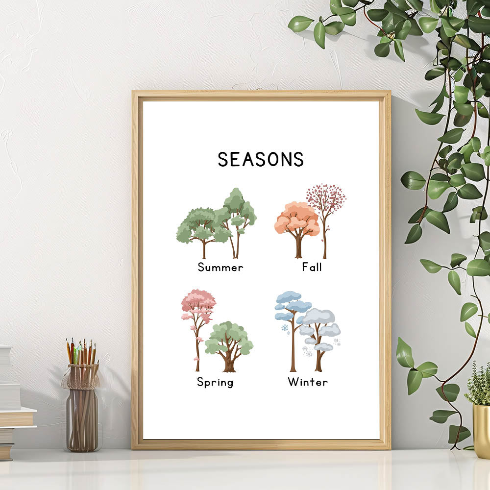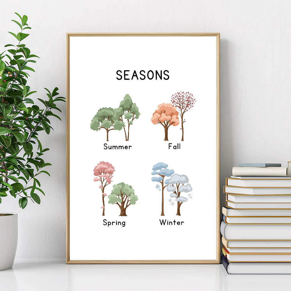 This Seasons of the Year Typography Art Print beautifully captures the essence of each season with vibrant and artistic representations of Summer, Fall, Spring, and Winter. Featuring trees that change with the seasons, this minimalist typography canvas brings a touch of nature and seasonal beauty to any space. Perfect for living rooms, bedrooms, or offices, this art print will add a burst of color and style to your décor.