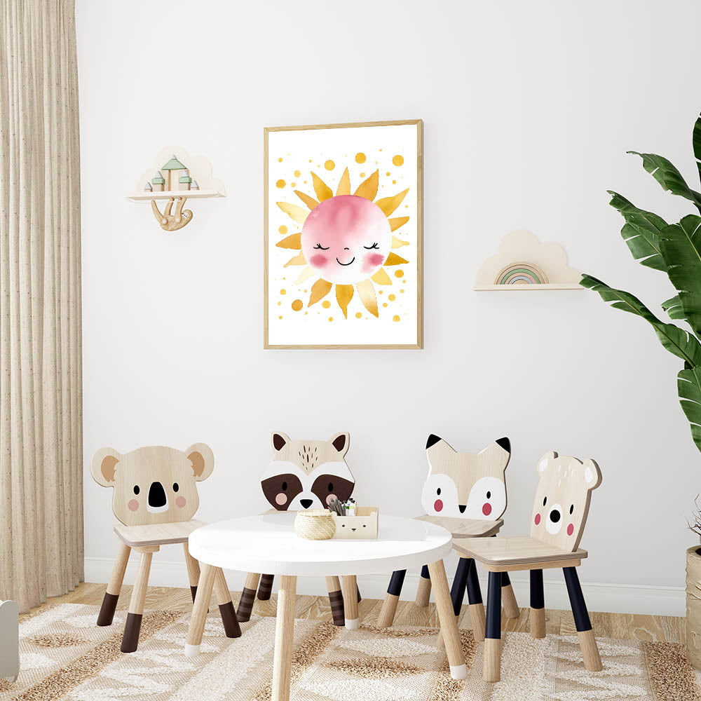 Smiling Sun Girls Room Wall Art – Cheerful Nursery Print
