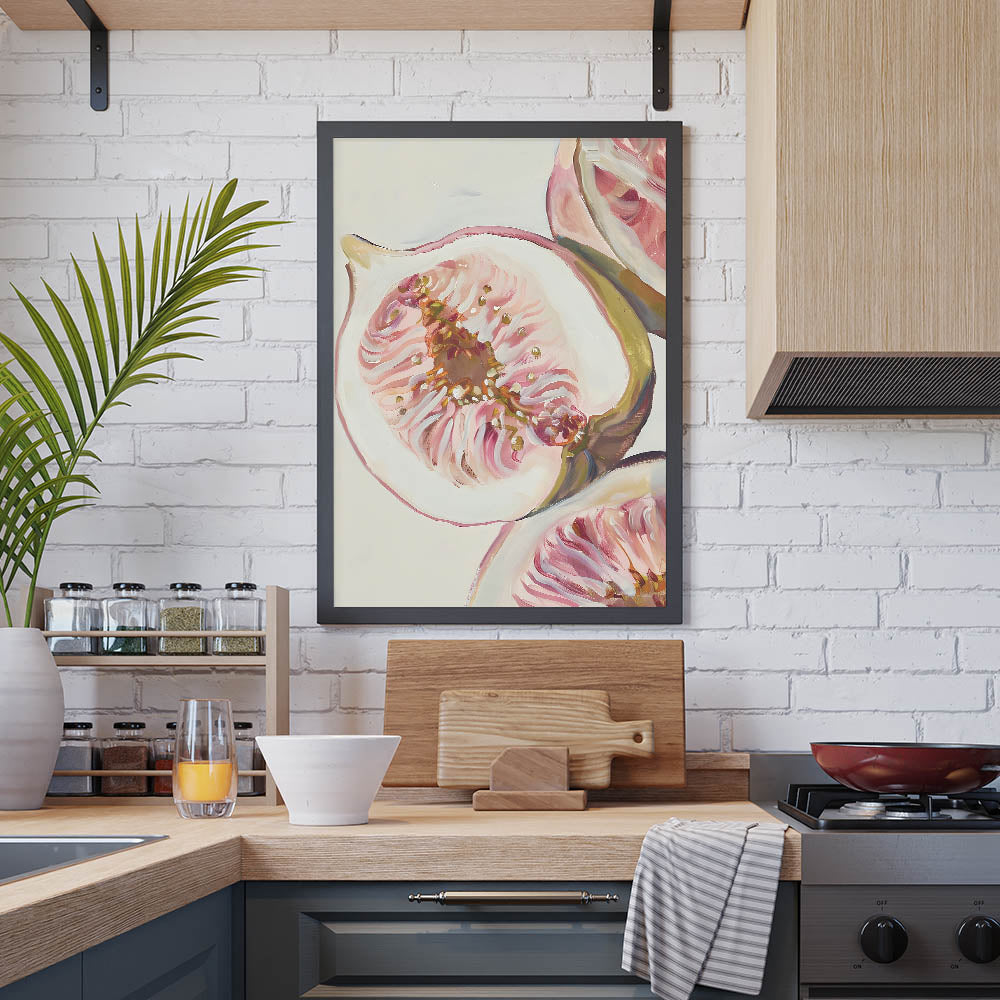 - Beautiful fruit art print featuring sliced figs in soft hues.