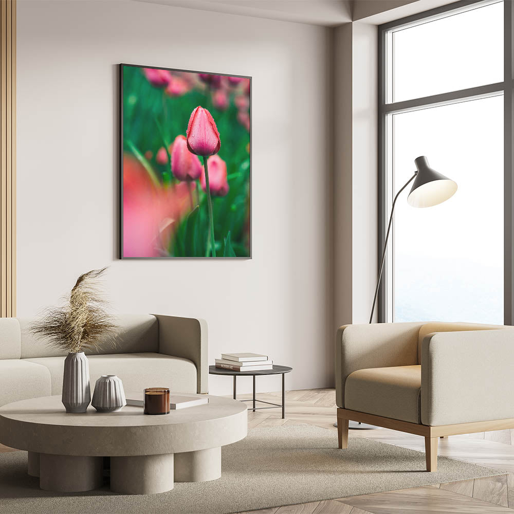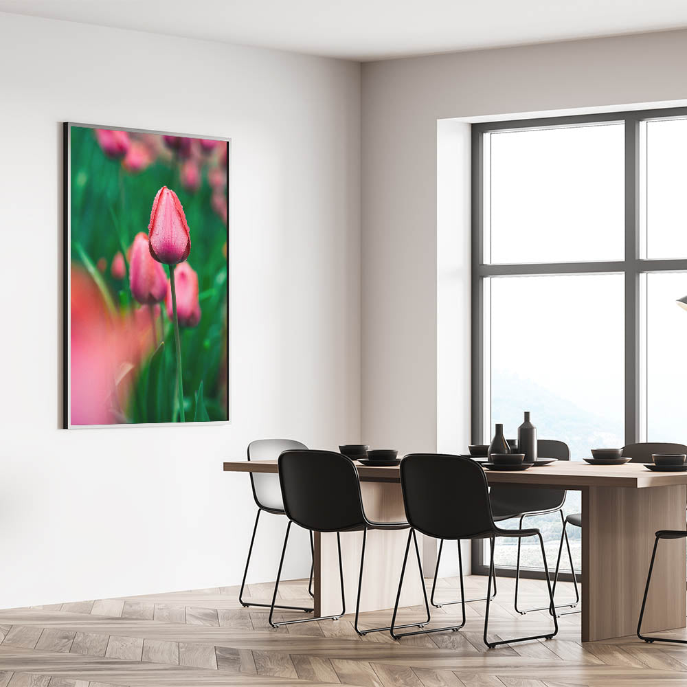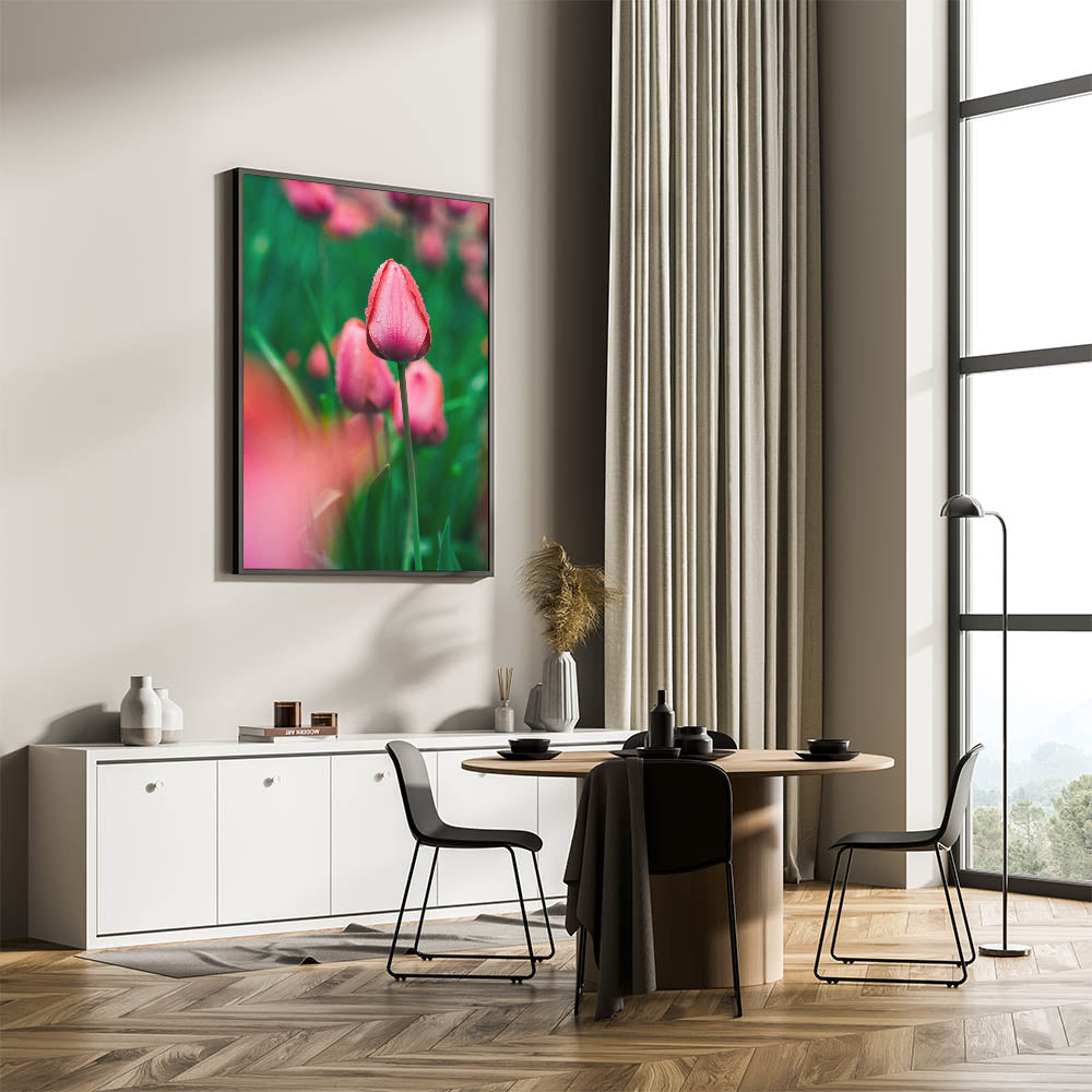 This Floral Wall Art embodies the joy and renewal of spring, making it a wonderful accent for any home. The soft pink hues and dewdrop details create a soothing yet refreshing ambiance, perfect for brightening up your space. Whether you're a tulip enthusiast or simply looking to bring the beauty of spring indoors, this print is a timeless addition to your decor.