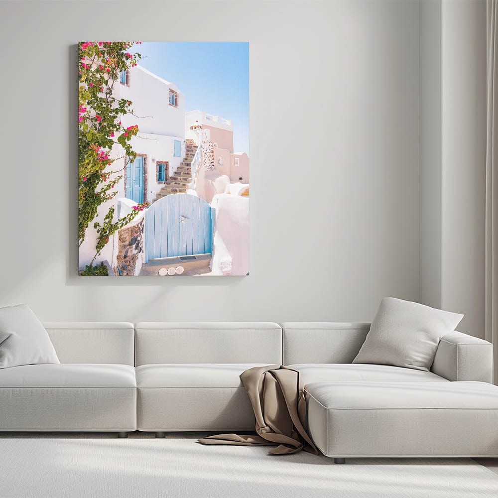 Summer Wall Art – Santorini Coastal Village Canvas Print
